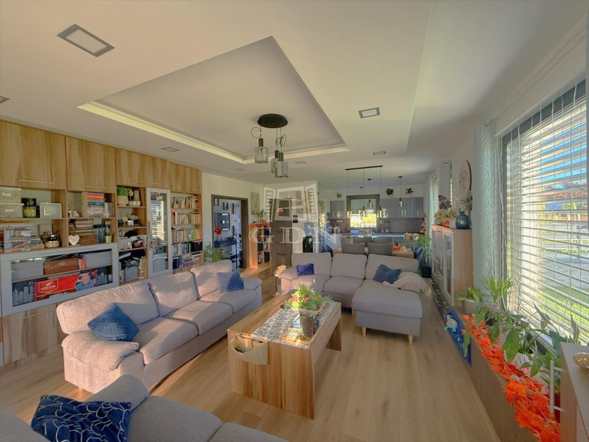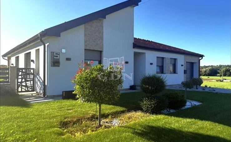 A ház elrendezése átgondolt és praktikus: négy kényelmes méretű szoba, egy világos nappali konyha étkező együttes, , kettő fürdőszoba, háztartási - gépészeti helyiség, gardrób, kamra, tároló, valamint két különálló garázs biztosítja a lakók kényelmét.