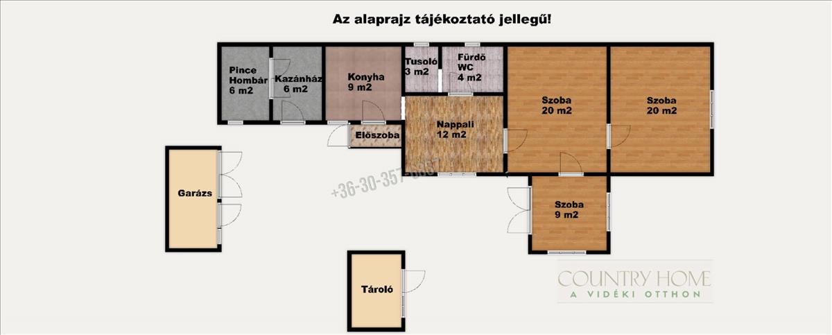 • 3 tágas szoba, nappali-étkező, konyha, fürdőszoba WC-vel, előszoba