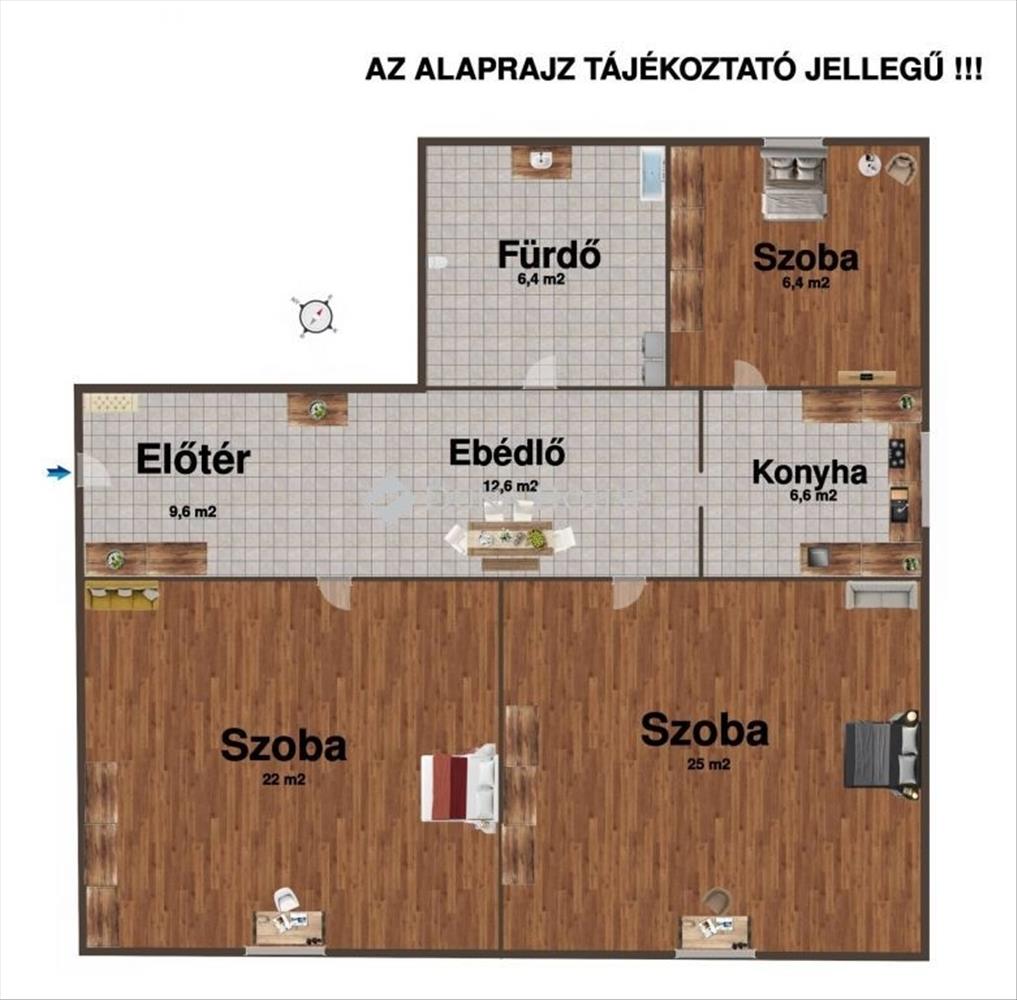 - praktikus belső elrendezés, külön nyíló komfortos szobák