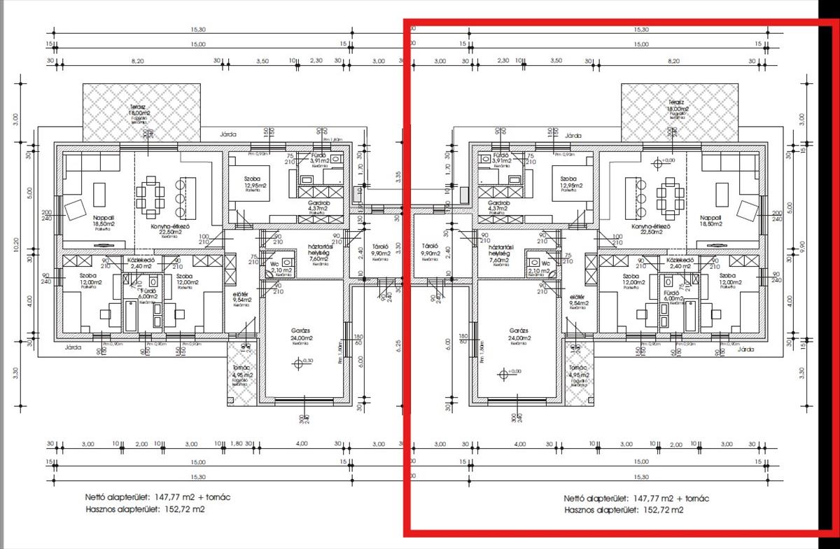 - nettó 153 m2 ( ebből 24 m2 garázs)