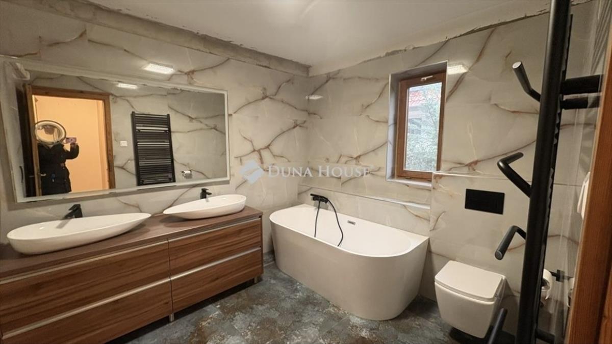 Nyugalom, tér, minőség mindössze 15 percre Budapesttől! Budajenő egyik legcsendesebb, forgalommentes zsákutcájában várja új tulajdonosát ez a nettó 208 m²-es (bruttó 248 m²), nappali + 4 hálószobás, duplakomfortos, dupla garázsos családi ház. Ha fontos a biztonságos, zöld környezet, a madárcsicsergés és a valódi élettér de a főváros közelsége is számít, ez az otthon tökéletes választás. Budapest mindössze 15 perc autóval. 924 M²-es, intim kert ideális pihenéshez, kertészkedéshez vagy gyerekek szórakozásához. Élhető, átgondolt terek két szinten Nappali + 4 kényelmes hálószoba nagycsaládosoknak is ideális Dupla garázs két autó számára + extra tárolóhelyMűszaki tartalom: Viessmann kondenzációs gázkazán Padlófűtés + radiátoros hőleadás Fujitsu hűtő-fűtő klíma a tetőtérben Beépített vízlágyító rendszerEz az ingatlan tökéletes választás azoknak, akik nyugalomra, minőségre és élhető térre vágynak. Ha szeretné személyesen is megtapasztalni az otthon hangulatát, hívjon bizalommal! FIX 3% lakáshitelre megvehető