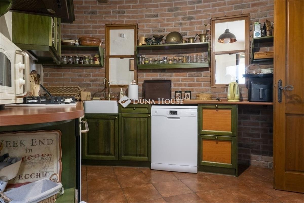 Szeretne country hangulatú otthont Budajenőn? Csendes utcában szinte új családi ház eladó! Budajenő csendes, zöld mellékutcájában eladóvá vált egy 2022-ben épült, 216 nm-es családi ház. Lovas család tulajdona, akik a természetre hangolódva élnek, az otthonukat is ennek szellemében alakították ki. Kiváló minőségű alapanyagok, egyedi megoldások, százéves fagerenda design, asztalosmesterek beépített szekrényei, természetes ívek, napsütötte terek. Az épület 38-as, nútféderes porotherm téglából készült, vasbeton födémmel, azon 20 cm-es hang- és hőszigeteléssel. a külső falakon 6 cm-es hőszigetelés. a tetőn csornai cserép, alatta knauf Ecose-paplan kettős szigetelés. Hőszigetelt egyedi nyílászárók, szúnyoghálókkal. a fűtés nagyon gazdaságos: gázkazánnal, padlófűtéssel, radiátorokkal történik, a tetőtérben 1 db hűtő-fűtő klíma üzemel. Az elektromos hálózat szabványosan készült - 3x16A - a háztetőre könnyen telepíthető napelem. Kamera- és riasztórendszer, optikai kábel, vízlágyító is segítik a háziak komfortos életét. Egy éven belül készült el a teljes belső festés, a külső faburkolatok festése, a kerítés felújítása. Minden szinte teljesen új, csak költözni kell. a ház a kiváló szigetelésnek köszönhetően nagyon energiahatékonyan üzemeltethető:2024. Rezsi átalány:víz 6. 400 Ft/hógáz 8. 000 Ft/hóáram 7. 980 Ft/hóaz építményadó 74. 880 / Év. a 712 nm-es, teljesen körülkerített telken kétállásos, fedett kocsibeálló és egy 18 nm-es, borostyánnal befuttatott kennel. Az enyhén lejtős kert parkosított, benne termését ontó fügefa, gyógynövénykert, 2 bőven termő veteményes és kerti vízcsap külön mérővel. Árnyas, virágos utca, barátságos szomszédok. a tulajdonosok nagyon szeretnek itt élni, csak a lovaik miatt költöznek el. Budajenő a Budai Tájvédelmi körzet mellett erdők ölelte kis község, Budapesttől 22 km-re. Van cba, egyéb üzletek, nagyon jó óvoda és iskola, valamint összetartó faluközösség. Ha ilyen természetes hangulatú, egyedi otthonra vágyik, várom hívását.