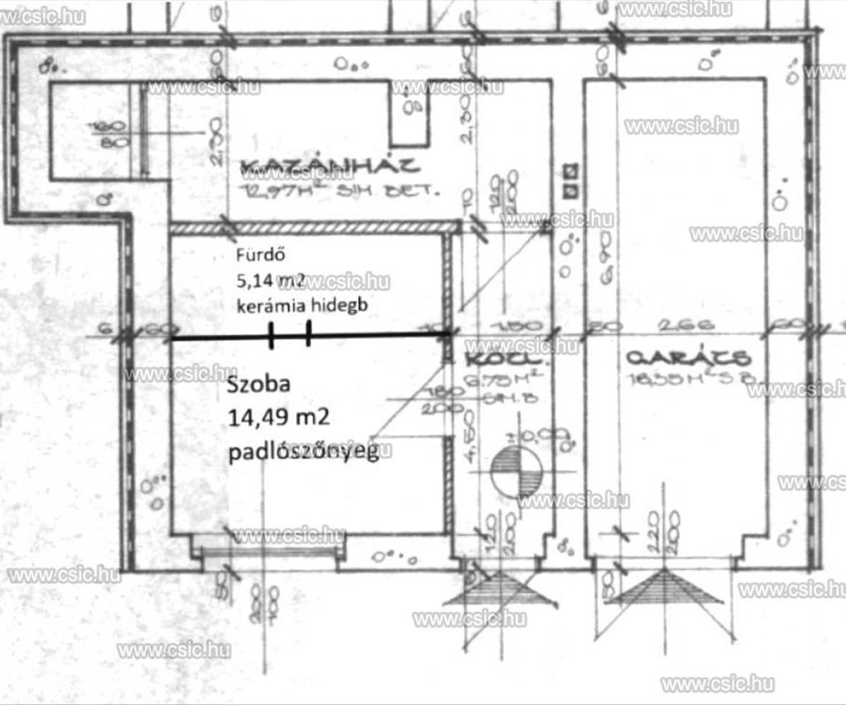 - alsó szinten: garázs (18 nm), szoba (15 nm), fürdőszoba, kazánház