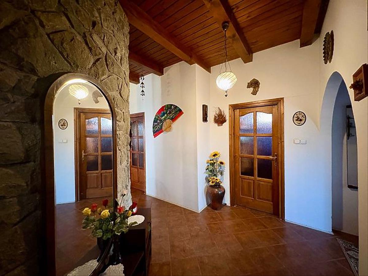 -2003-Ban épült, 30-as Porotherm téglából, a ház teljes falfelületét faragott kő borítja.