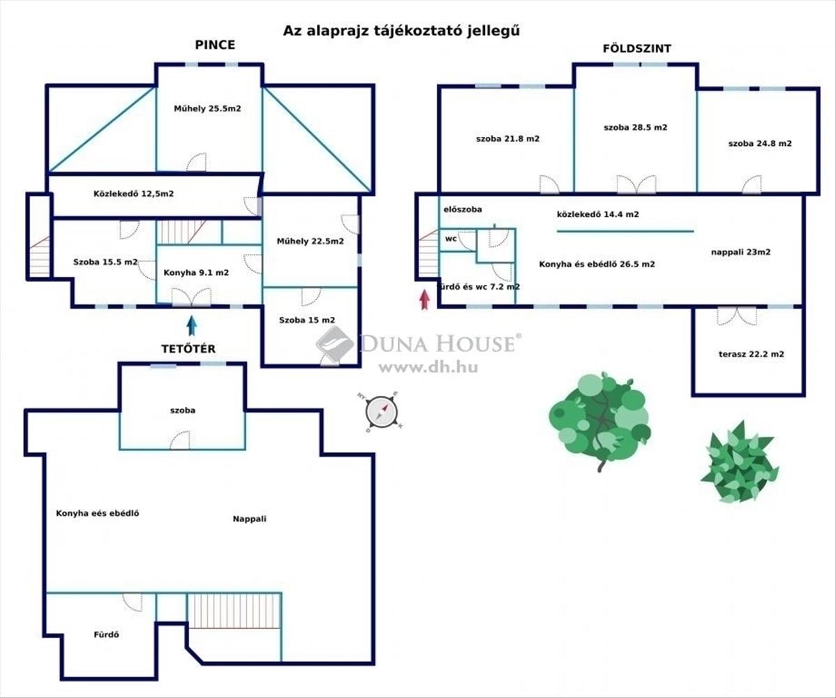 Az ingatlan 3 szintre tagozódik, összesen bruttó 350 m2 alapterülettel, nagyméretű terasszal kiegészülve.