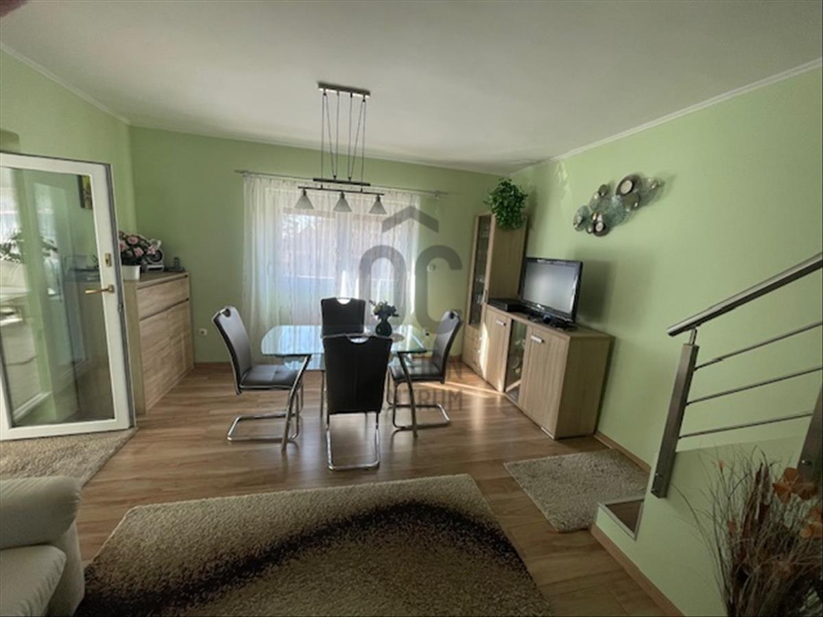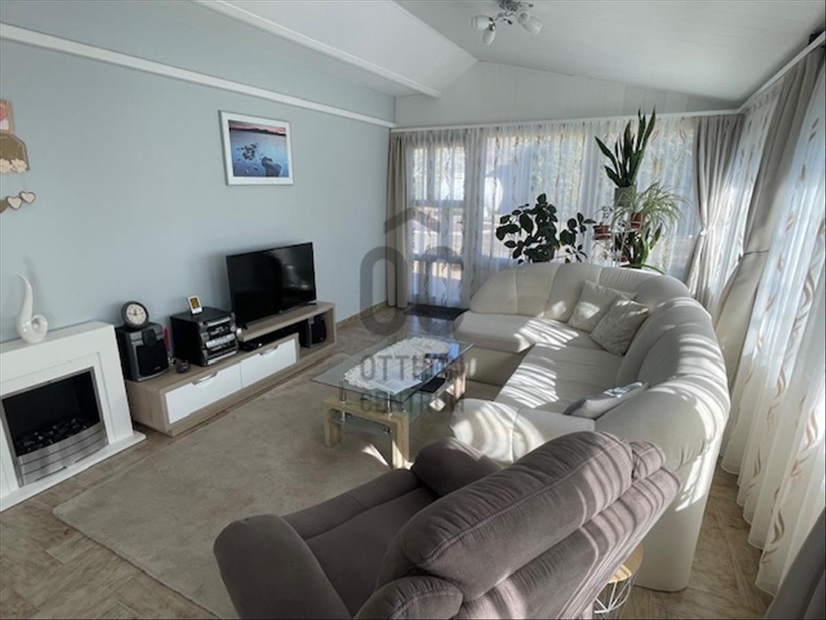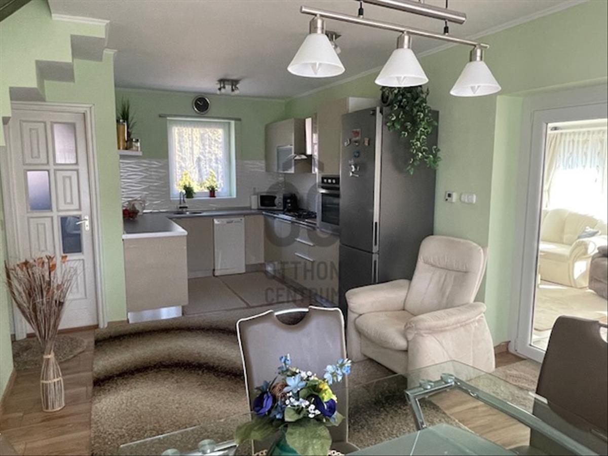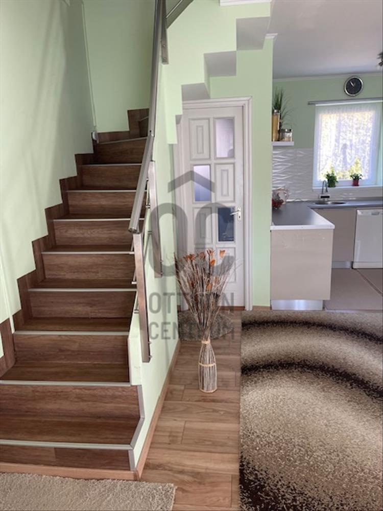 A tágas nappali világos és modern kialakítása a családi együttlétek méltó helyszínévé teszi, míg a 10 nm -es terasz a nyári estéken kínál kellemes pihenési lehetőséget. Az alsó szinten a nappaliból nyílik a tágas, 27 nm -es étkező-konyha, így bőséges hely áll rendelkezésre nagyobb családi- vagy baráti összejövetelek esetén is. a földszinti wc-kézmosó gondoskodik arról, hogy a vendégeknek ne kelljen igénybe venni a fenti fürdőszobát. a gázfűtés (cirko) és a klíma megfelelő hőmérsékletet biztosít bármely évszakban, amit a konyhában és az étkezőben padlófűtés egészít ki. a 3 külön nyíló szoba önálló teret biztosít a család minden tagjának. a hatalmas dupla garázs és a 28 nm -es tároló ritka érték, elnyeli az összes kacatot. a kerti szerszámok tárolásához önálló faház áll rendelkezésre.
