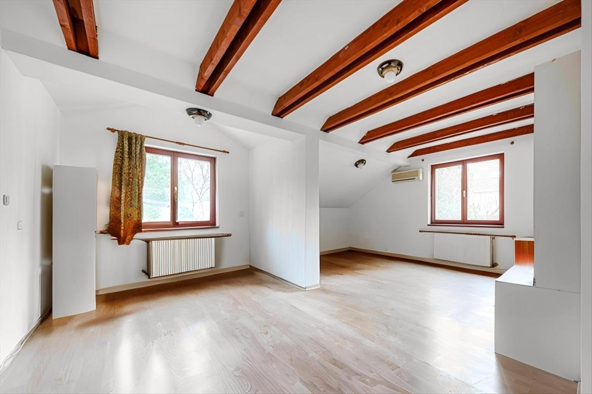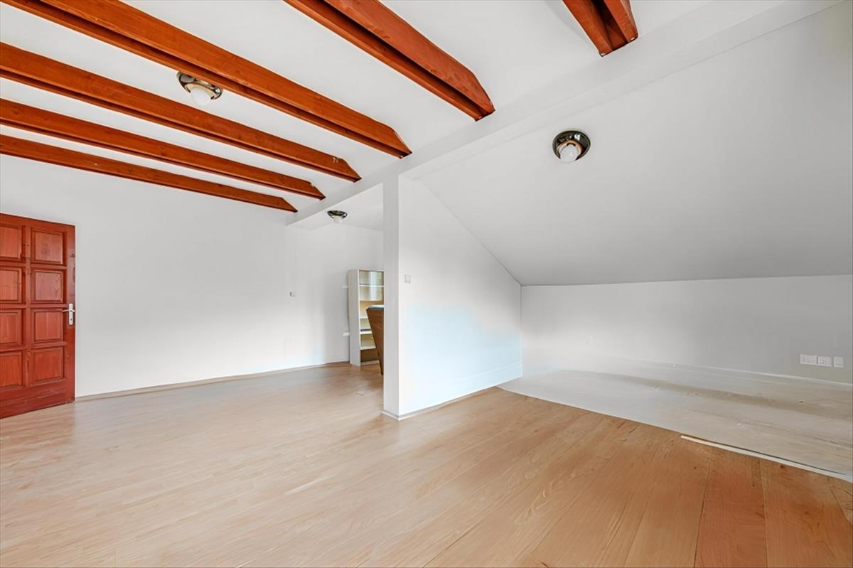 A teljes értékű tetőtérben két szoba -melyből az egyik kettéosztható-, nagy méretű fürdőszoba, külön wc és gardrób kapott helyet.
