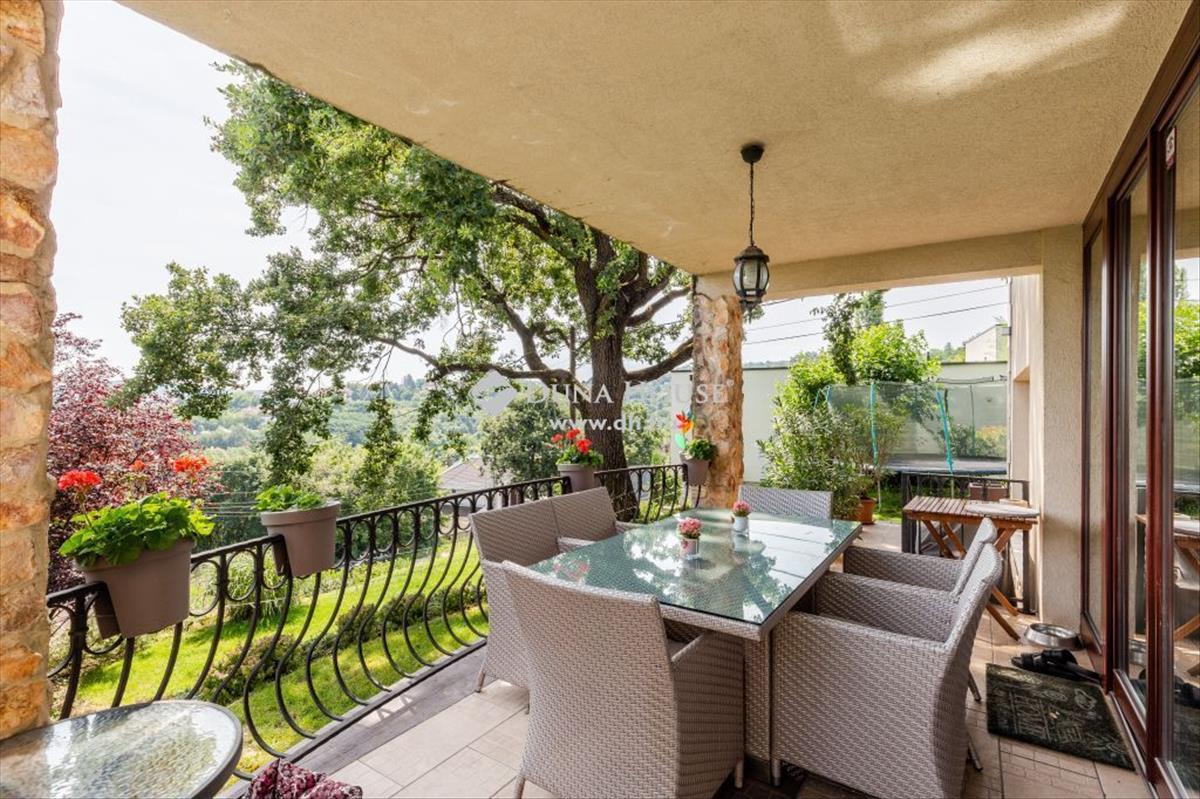 A 1007 m2 teraszos, panorámás, összközműves telken fekvő, 2006-ban első osztályú anyagokból épített, kiválóan felszerelt, 3 szintes épület.