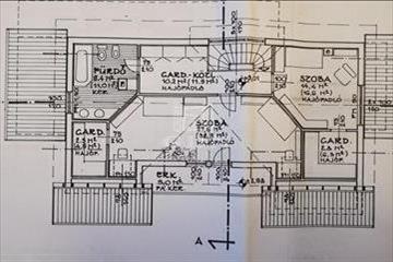 Az emeleten vendégszoba, két hálószoba gardróbbal, terasszal, fürdőszoba és előtér található.