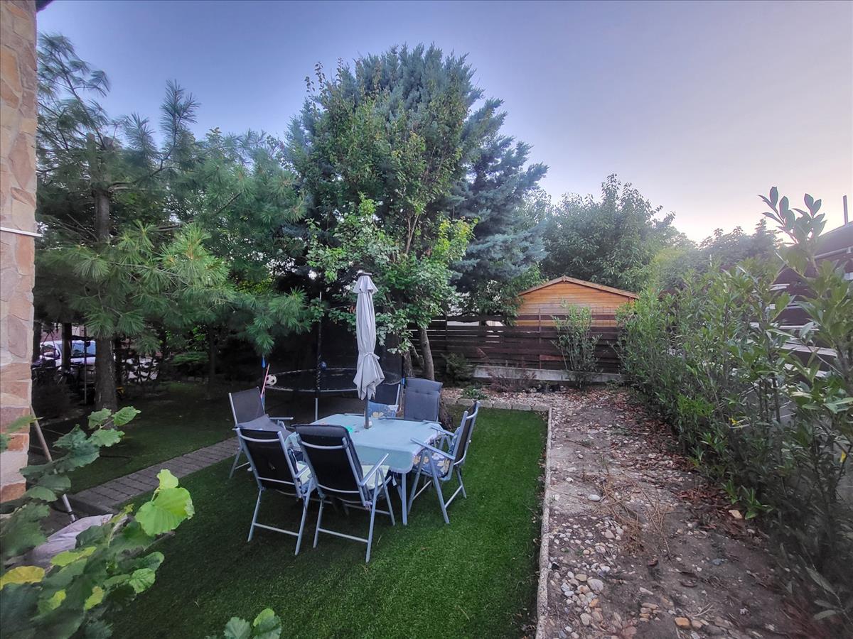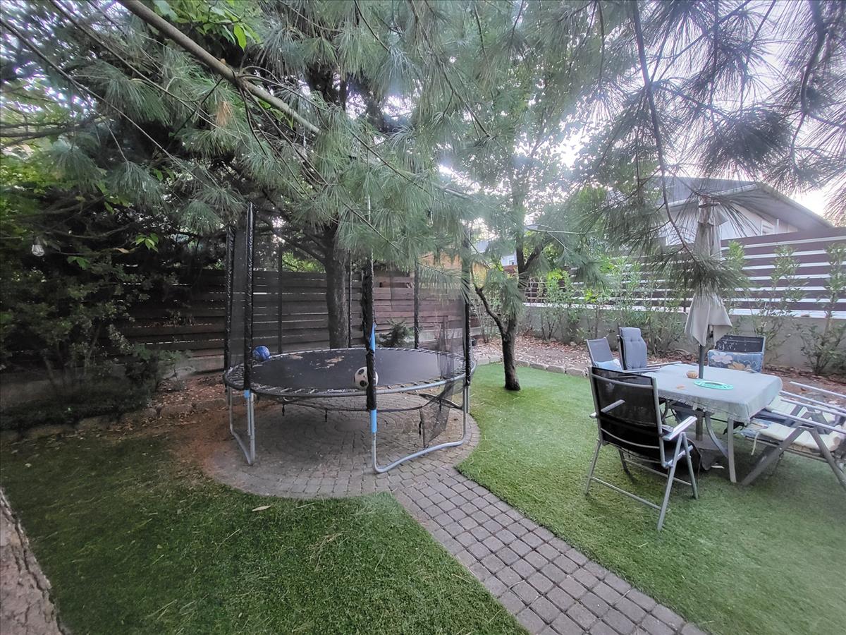 350 m²-es, műfűvel borított kert, nagy fákkal, pihenésre kialakítva