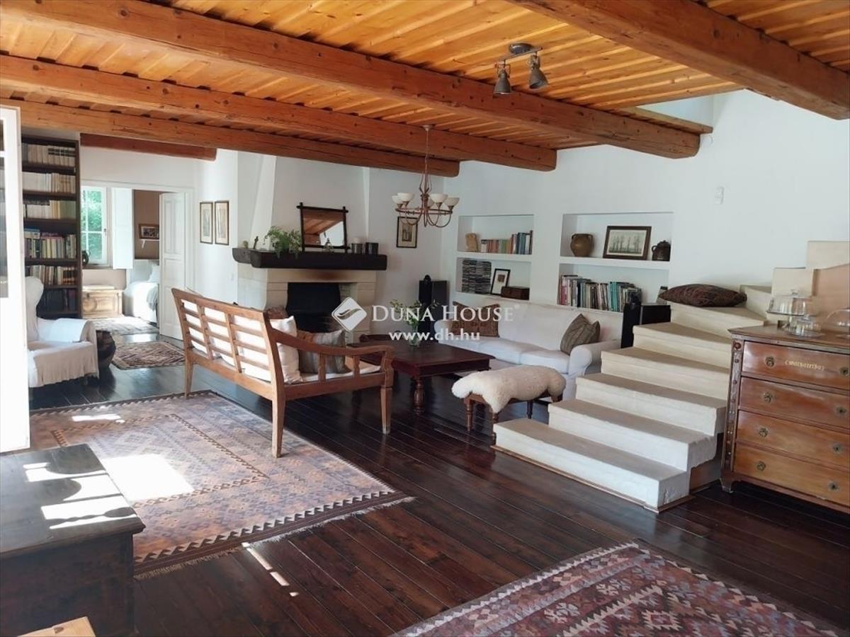 Itt minden van, amit egy igazi otthontól elvárhat: stabil, jól megépített, valódi anyagokból készült épület, fedett és nyitott teraszok, stílusos fagerendás (ál)mennyezet, homokkőből készült lépcső, kandallós nappali, két fürdőszoba, szauna, rengeteg tároló és 4 hálószoba! a kert olyan, mintha egy arborétumban járna, csak automata öntöző rendszer is van benne. a telek lejtését jól kihasználva a ház belesimul a kertbe, így még panorámás kilátásban is gyönyörködhet!