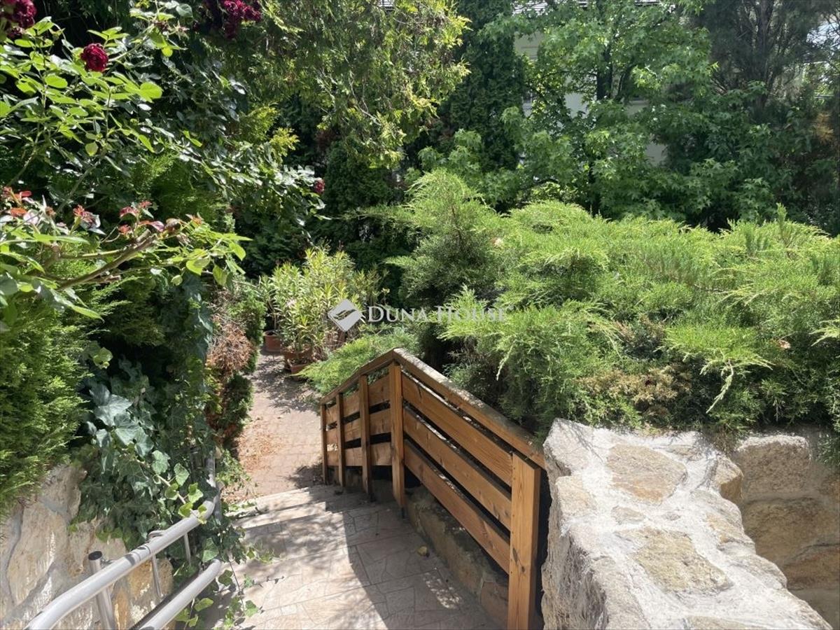 A kertje a háznak valódi ékkő, amit gyönyörű növényzet öntözőrendszerrel egy hangulatos kis tó és egy praktikus szerszámtároló tesz teljessé, igy kitűnő helyszín a kikapcsolódás és a szabadidós tevékenységek számára. Az önálló két autó beállásos garázs pedig kényelmes parkolást biztosít.