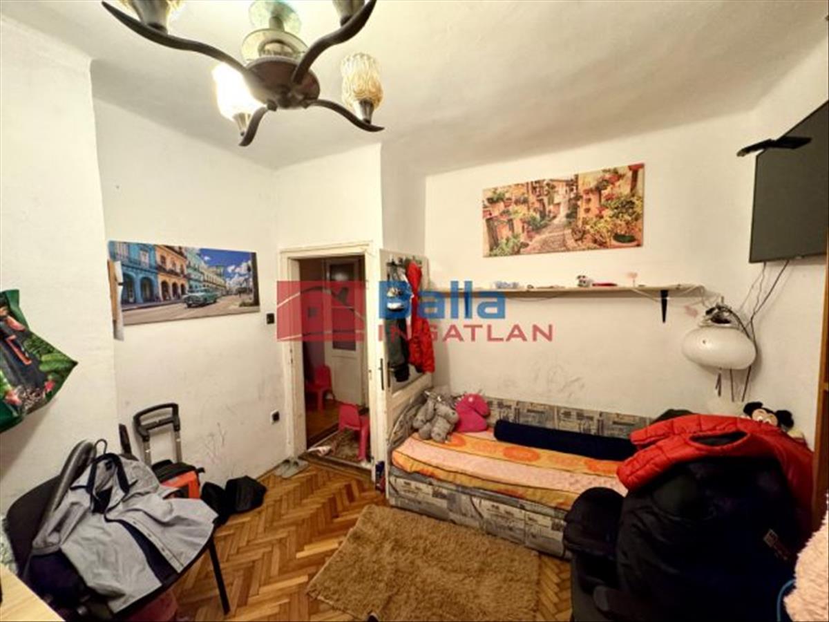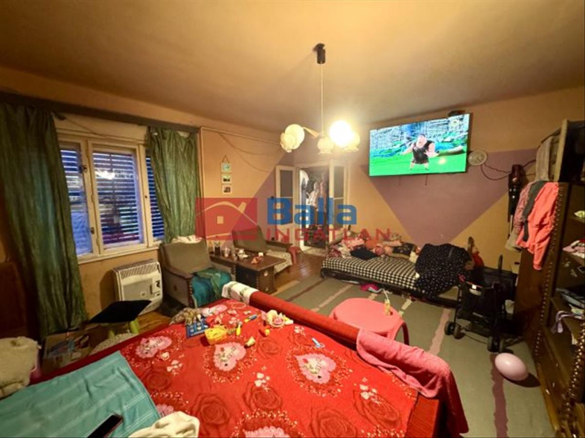Az ingatlan alapvetően közepes állapotú, némi felújítást igényel. Két rendkívül tágas, jó méretű szobából áll, egy kisebb hálószobából, dupla fürdő, wc, konyha és egy tágas előtér, mely egyben étkező is. Elosztása kiváló, mivel minden szoba külön nyíló. Konyhája ablakos és kamrával ellátott. Fürdő egyben található a wc-vel, viszont van még egy fürdőszobája. Tágas terasza kb. 30 m2 az utca irányába néz. Kint található egy tároló helyiség is.
