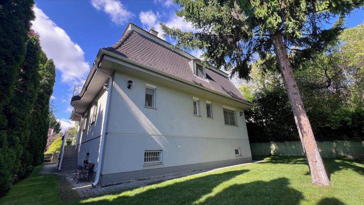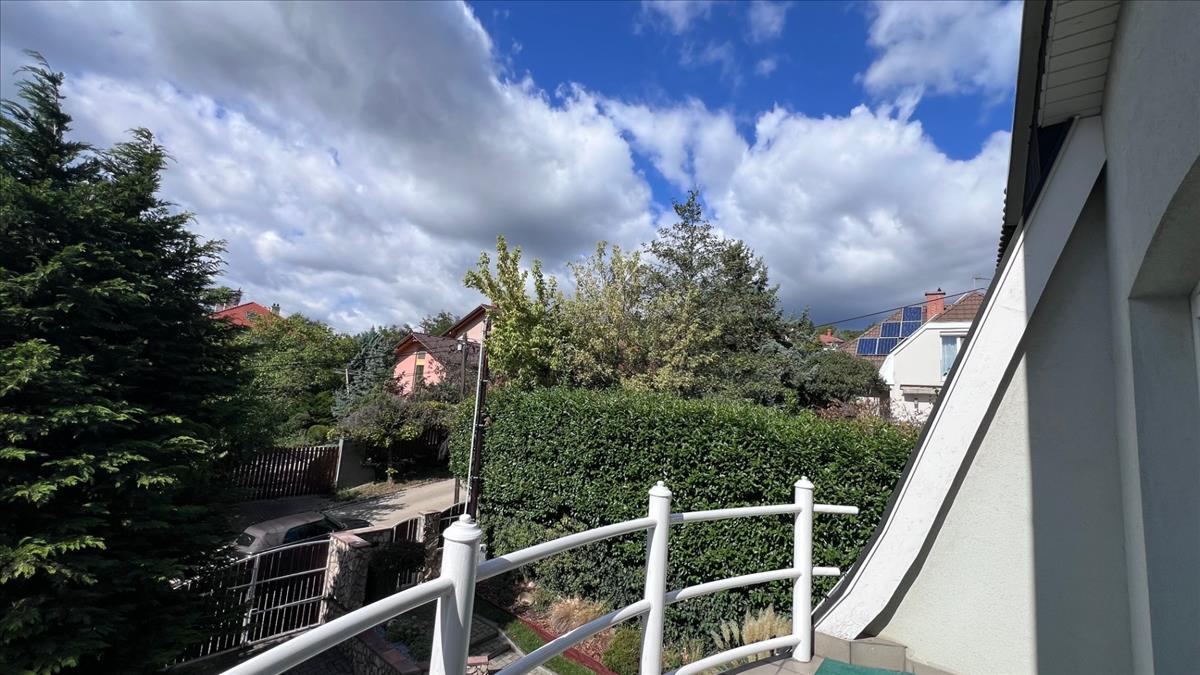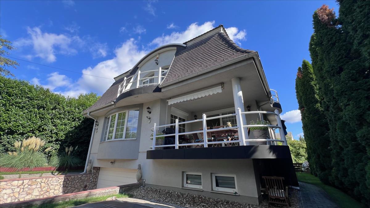 Frankhegy lábánál, nyugodt környezetben eladó egy bruttó 368 nm -es, modern családi ház, amely kiváló elrendezésével és minőségi felszereltségével ideális nagyobb család számára is.