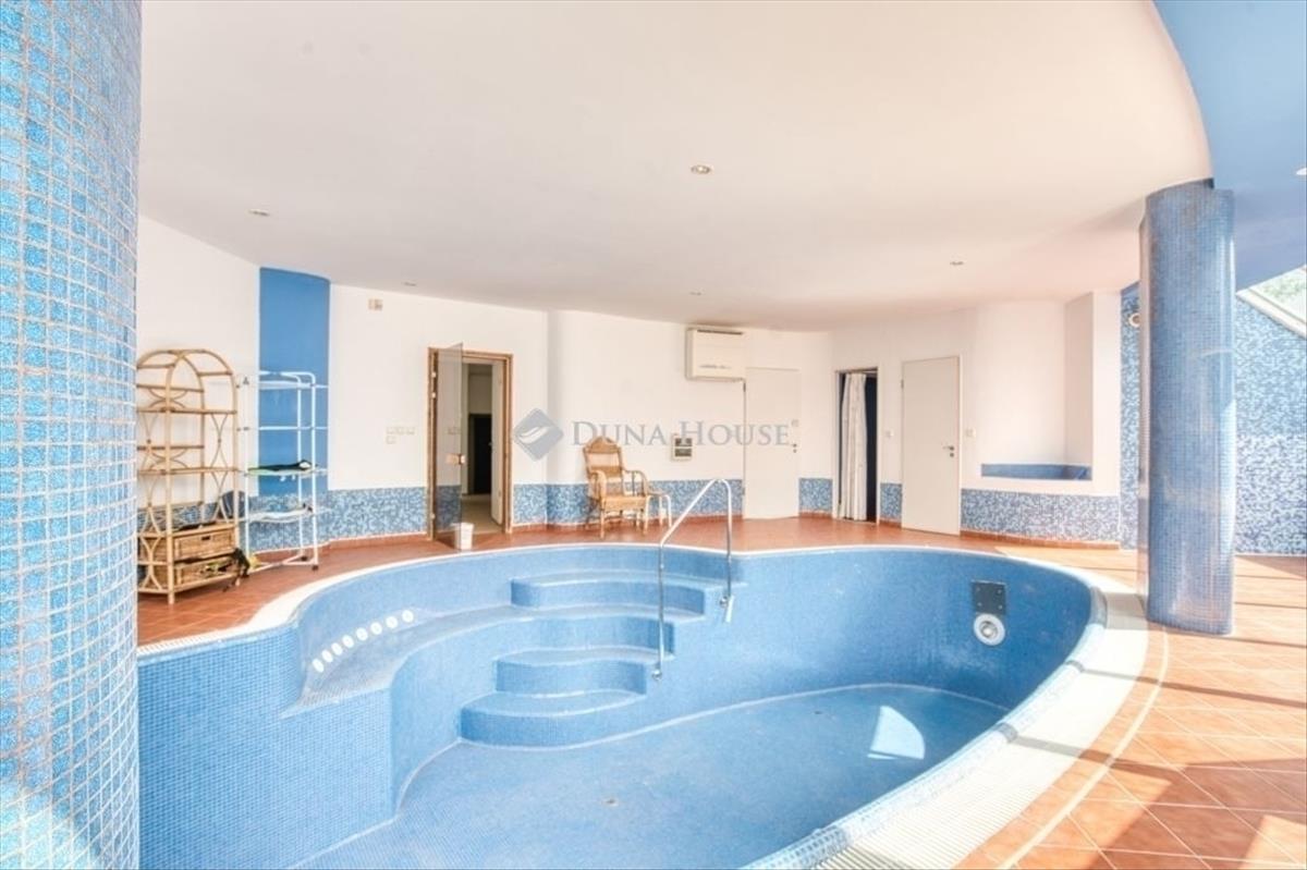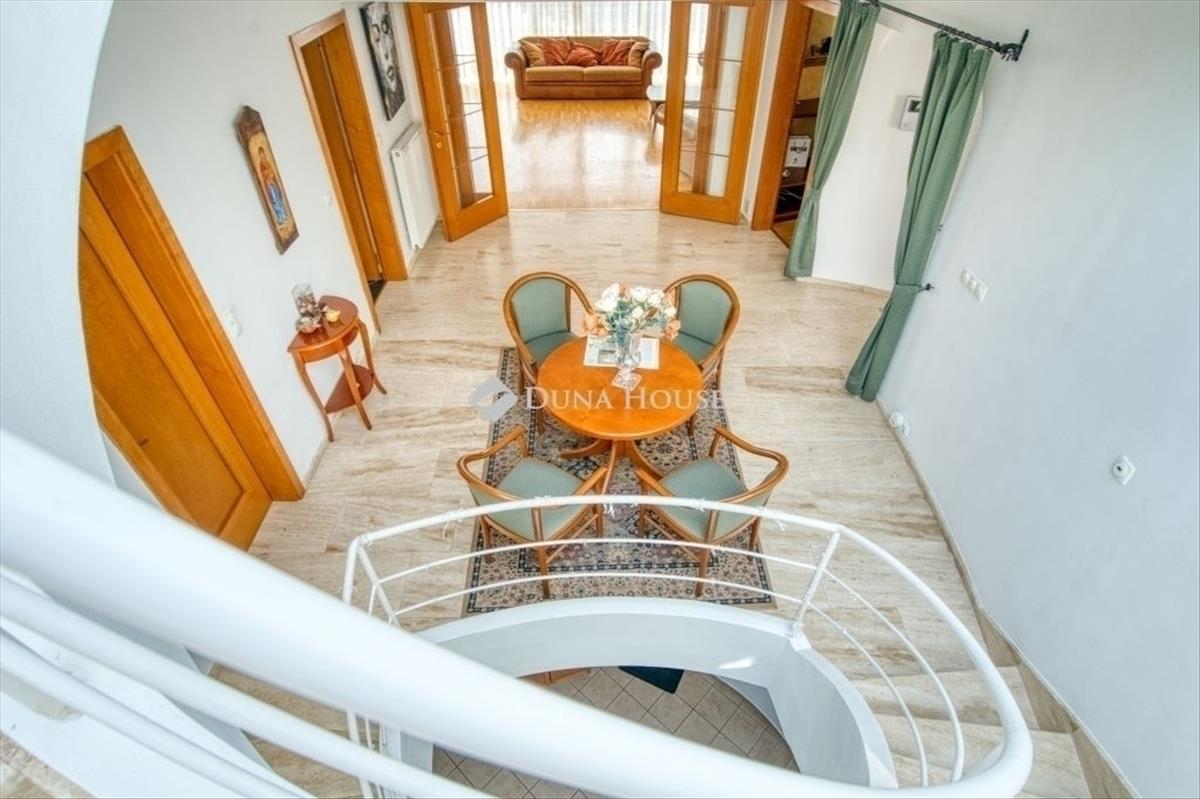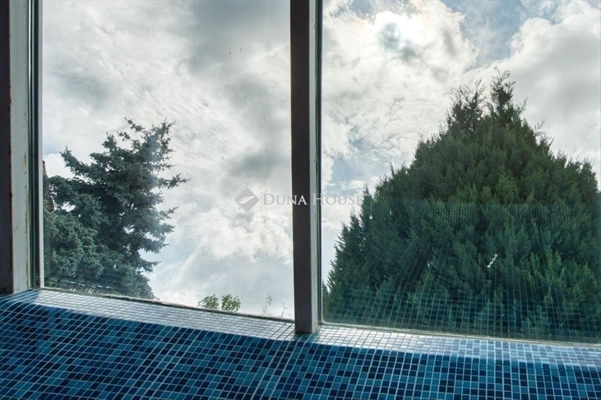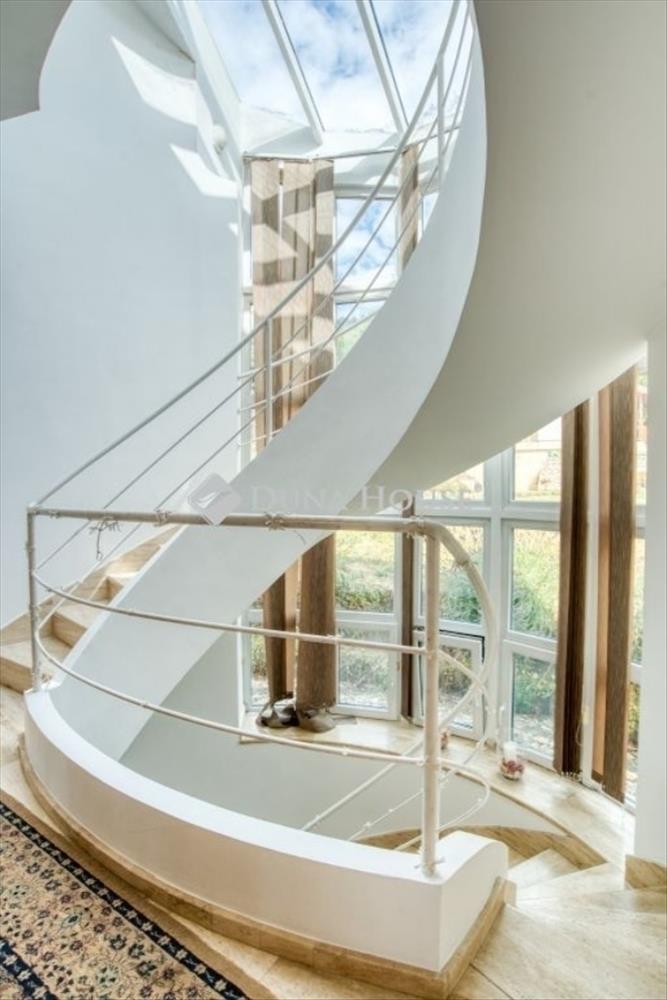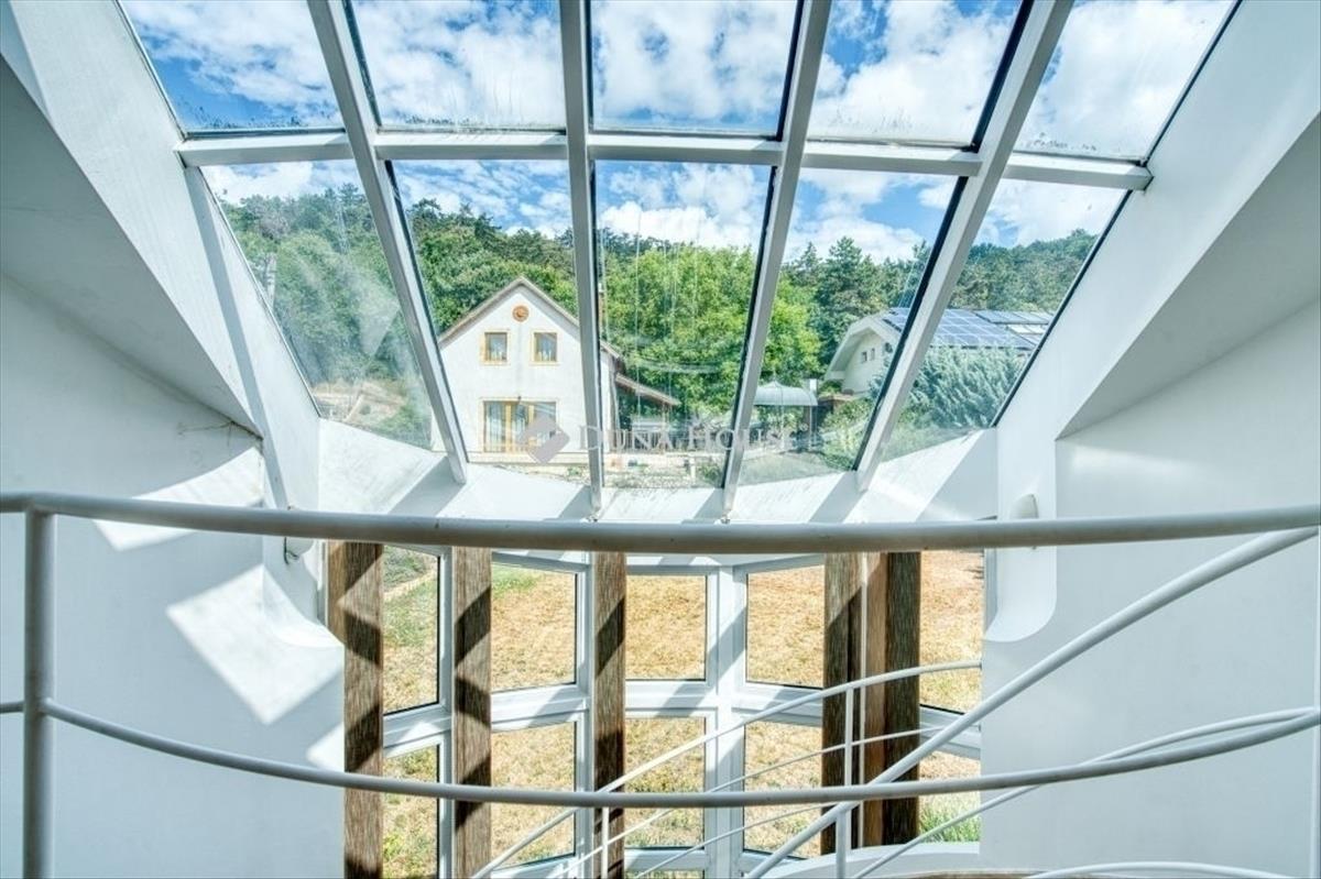 Egyedi, ökologikus otthon BudaörsönEladó egy rendkívüli, panorámás birtok Budaörsön, a Csikidűlő-hegyoldalban. a nagyméretű telken két különálló épület helyezkedik el. a nagyobbik villa Dr. Kuba Gellért által tervezett, ökologikus építésű ház, így ideális választás többgenerációs családok számára is. Főépület (485 m²)A nagyobbik villa minden igényt kielégítő, modern luxust kínál. Wellness részleg: belső medence és szauna gondoskodik a teljes kikapcsolódásról. Energiatakarékosság: a ház rendkívül energiahatékony megoldásokkal van felszerelve: a medence és a használati melegvíz fűtését vákuumcsöves napkollektor biztosítja, a tiszta levegőről pedig folyamatos frisslevegő-ellátás gondoskodik. Mindez kiegészül a gravitációs légfűtés rendszerével, ami tovább optimalizálja a fűtési költségeket. Kényelem: a mindennapi tisztaságról és a pormentes levegőről a beépített központi porszívó rendszer gondoskodik. Panorámás nappali: tágas, kandallós nappali, ahonnan lélegzetelállító körpanoráma nyílik. Hálószobák: 5 hálószoba saját fürdőszobával és gardróbbal, a maximális kényelemért. Garázs: a hatalmas teremgarázsban 4-5 autó is kényelmesen elfér, a be- és kiállást pedig a beépített fordítókorongos rendszer segíti. Vendégház (100 m²)A kisebbik épület funkcionális és kényelmes elrendezésű. Nappali: világos, amerikai konyhás nappali a közösségi terek központja. Hálószoba és fürdő: egy nagyméretű hálószoba és hozzá tartozó fürdő szolgálja a lakók kényelmét. Terasz: a nappalihoz közvetlenül kapcsolódó, panorámás teraszon nyári konyha is található, amely tökéletes helyszín a kerti partiknak. Az egész birtokot a nyugalom, a zöld környezet és a gyönyörű kilátás jellemzi. Ne hagyja ki ezt a ritka lehetőséget, ha egy luxus családi otthont keres Budaörs egyik legszebb részén!