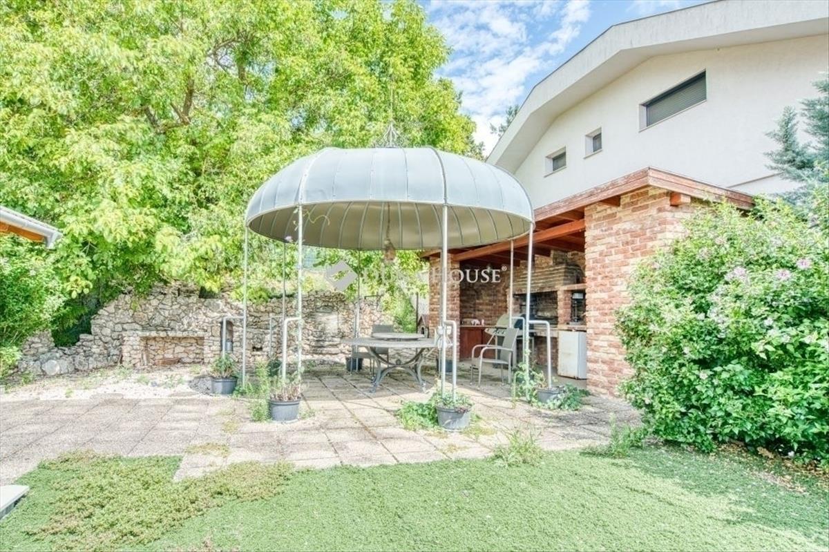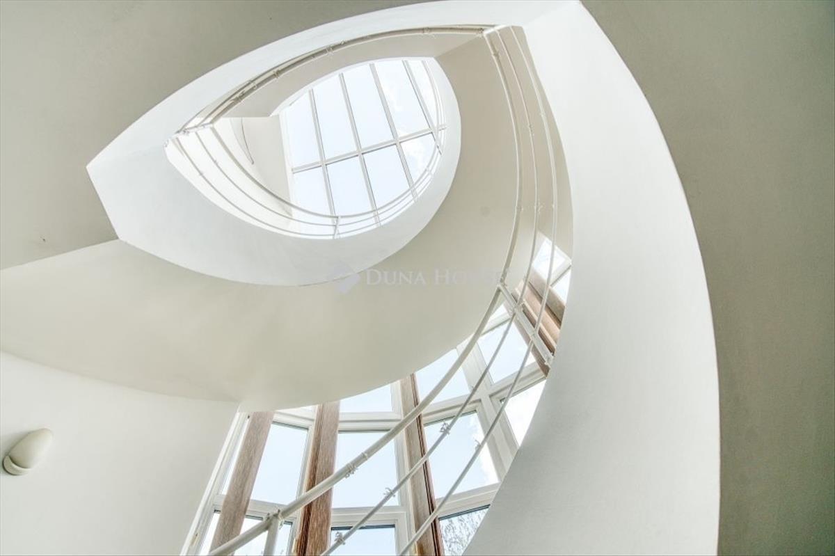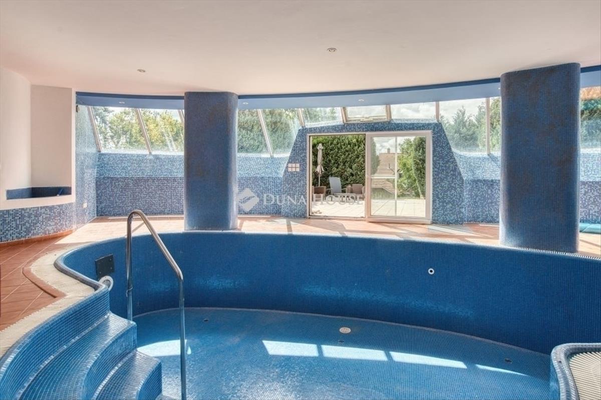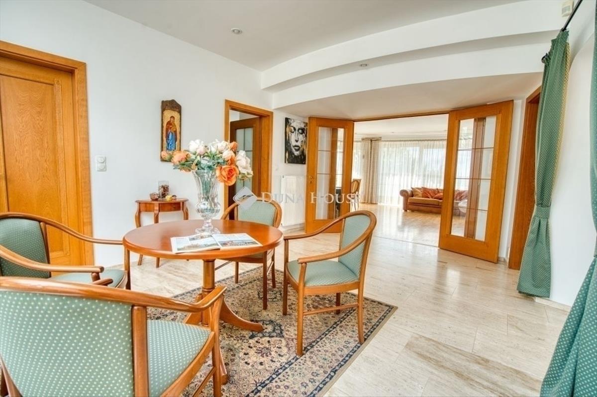 Egyedi, ökologikus otthon BudaörsönEladó egy rendkívüli, panorámás birtok Budaörsön, a Csikidűlő-hegyoldalban. a nagyméretű telken két különálló épület helyezkedik el. a nagyobbik villa Dr. Kuba Gellért által tervezett, ökologikus építésű ház, így ideális választás többgenerációs családok számára is. Főépület (485 m²)A nagyobbik villa minden igényt kielégítő, modern luxust kínál. Wellness részleg: belső medence és szauna gondoskodik a teljes kikapcsolódásról. Energiatakarékosság: a ház rendkívül energiahatékony megoldásokkal van felszerelve: a medence és a használati melegvíz fűtését vákuumcsöves napkollektor biztosítja, a tiszta levegőről pedig folyamatos frisslevegő-ellátás gondoskodik. Mindez kiegészül a gravitációs légfűtés rendszerével, ami tovább optimalizálja a fűtési költségeket. Kényelem: a mindennapi tisztaságról és a pormentes levegőről a beépített központi porszívó rendszer gondoskodik. Panorámás nappali: tágas, kandallós nappali, ahonnan lélegzetelállító körpanoráma nyílik. Hálószobák: 5 hálószoba saját fürdőszobával és gardróbbal, a maximális kényelemért. Garázs: a hatalmas teremgarázsban 4-5 autó is kényelmesen elfér, a be- és kiállást pedig a beépített fordítókorongos rendszer segíti. Vendégház (100 m²)A kisebbik épület funkcionális és kényelmes elrendezésű. Nappali: világos, amerikai konyhás nappali a közösségi terek központja. Hálószoba és fürdő: egy nagyméretű hálószoba és hozzá tartozó fürdő szolgálja a lakók kényelmét. Terasz: a nappalihoz közvetlenül kapcsolódó, panorámás teraszon nyári konyha is található, amely tökéletes helyszín a kerti partiknak. Az egész birtokot a nyugalom, a zöld környezet és a gyönyörű kilátás jellemzi. Ne hagyja ki ezt a ritka lehetőséget, ha egy luxus családi otthont keres Budaörs egyik legszebb részén!
