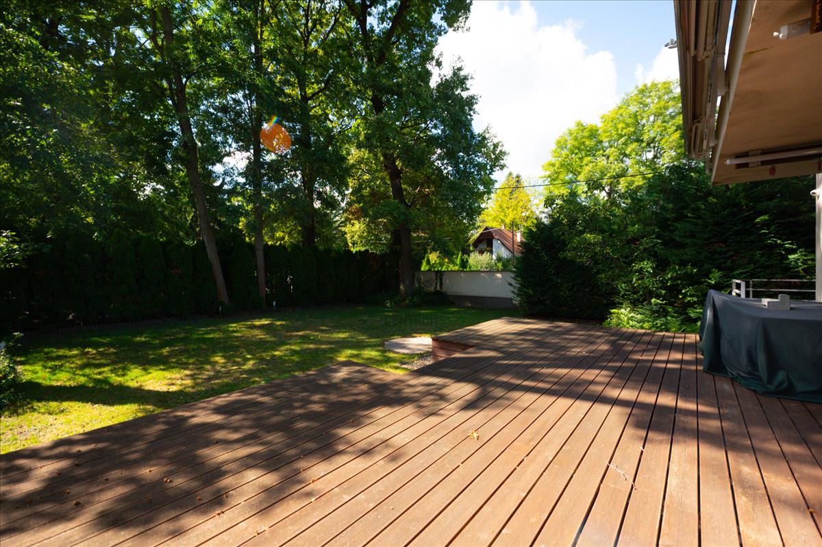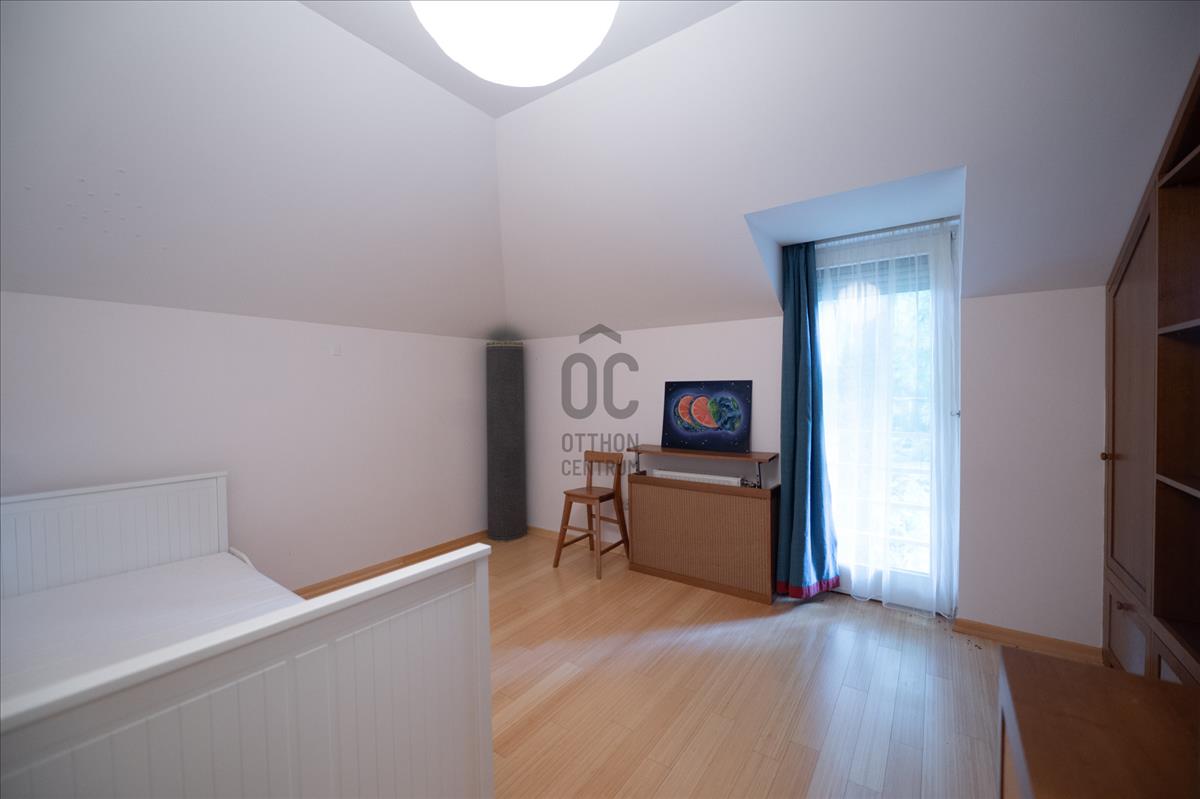 A házhoz két nagyméretű terasz tartozik: az egyik közvetlenül a gondozott kertre nyílik, a másik az emeleten kapott helyet, ahonnan kellemes panoráma élvezhető. a kertben dísznövények, zöldfelületek és igényes kertépítés várják az új tulajdonost.