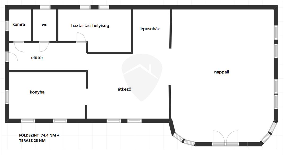 - Nappali kandallóval, körbeüvegezett kialakítással, kertkapcsolattal
