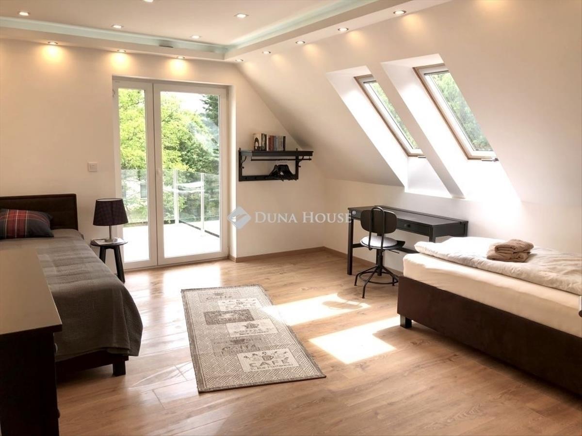 A felső emeleten egy fényárban úszó nagy nappali fogad - étkezővel, tetőablakokkal és dekoratív tetőgerendákkal ellátott magas helyiségekkel, egy jól felszerelt Nolte konyhával, 3 tágas hálószobával, 2 fürdőszobával, 2 nagy erkéllyel és egy fa laminált padlóval burkolt félemelettel rendelkezik, amelyhez már csak egy lépcső vagy létra feljáró szükséges. Minden szoba modern Daikin klímaberendezéssel van ellátva.
