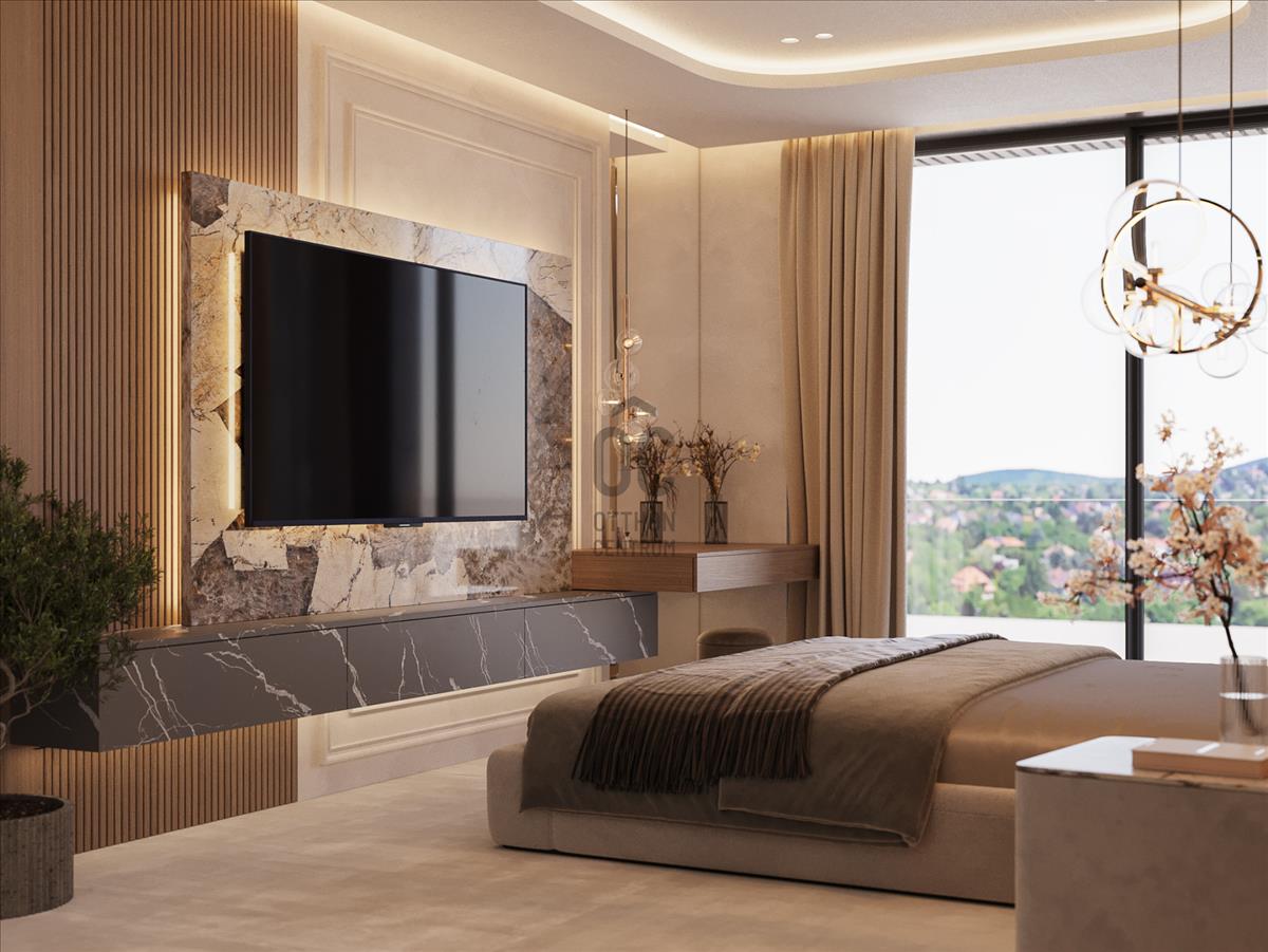 A masterbedroom alapterülete megegyezik egy kisebb lakáséval - szobaméretű gardrób, átlagfölötti alapterületű fürdőszobával - és a szobából nyíló privát teraszról a város egyik legkivételesebb panorámája nyílik meg előttünk!
