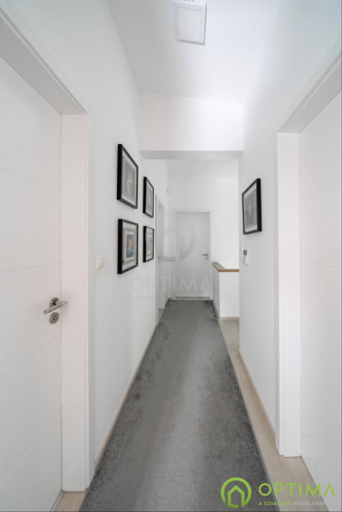 Az emeleten három hálószoba kapott helyet, melyek mindegyike teraszkapcsolatos, így a reggeli kávé elfogyasztása vagy egy esti pohár bor is privát kültéri élménnyé válhat. a ház gondosan megtervezett, modern építészeti stílusát mennyezeti hőszivattyús hűtés-fűtés teszi teljessé, amely egész évben kellemes hőmérsékletet biztosít. a biztonságról komplett riasztórendszer gondoskodik, míg a kiváló műszaki felszereltséget fém nyílászárók és elektromos redőnyök egészítik ki.