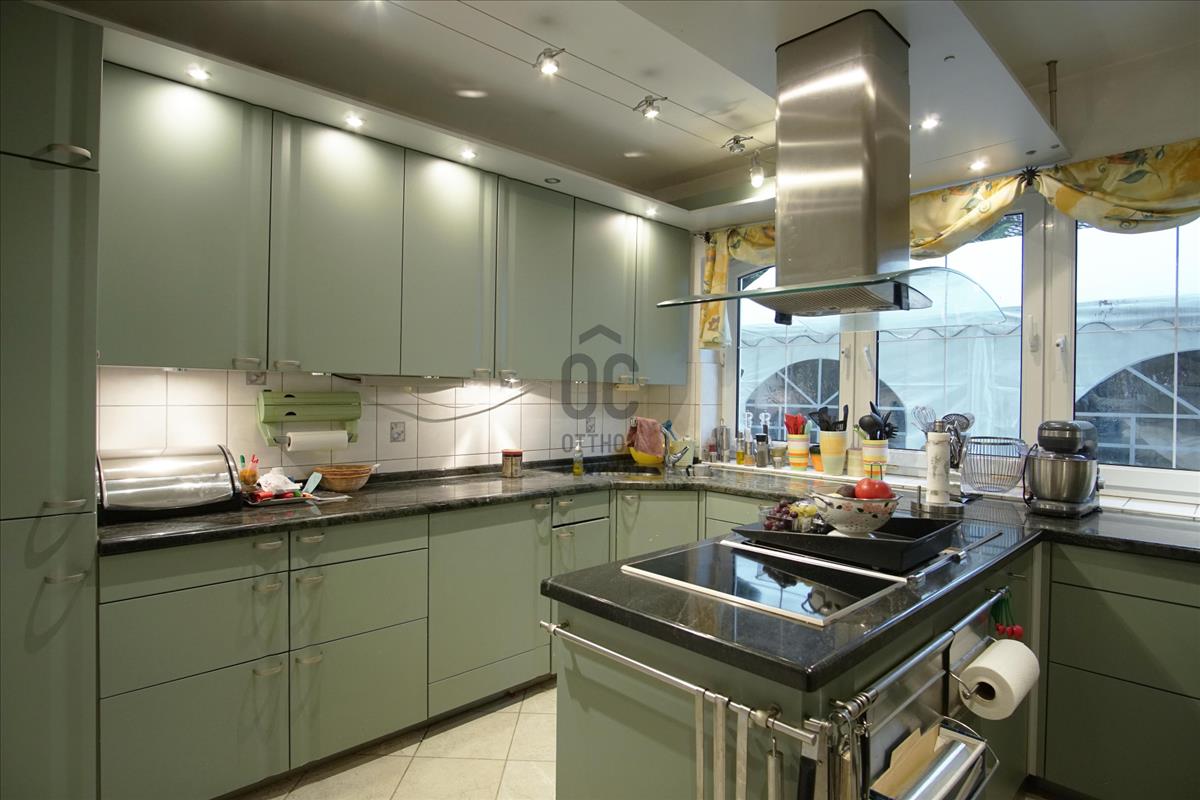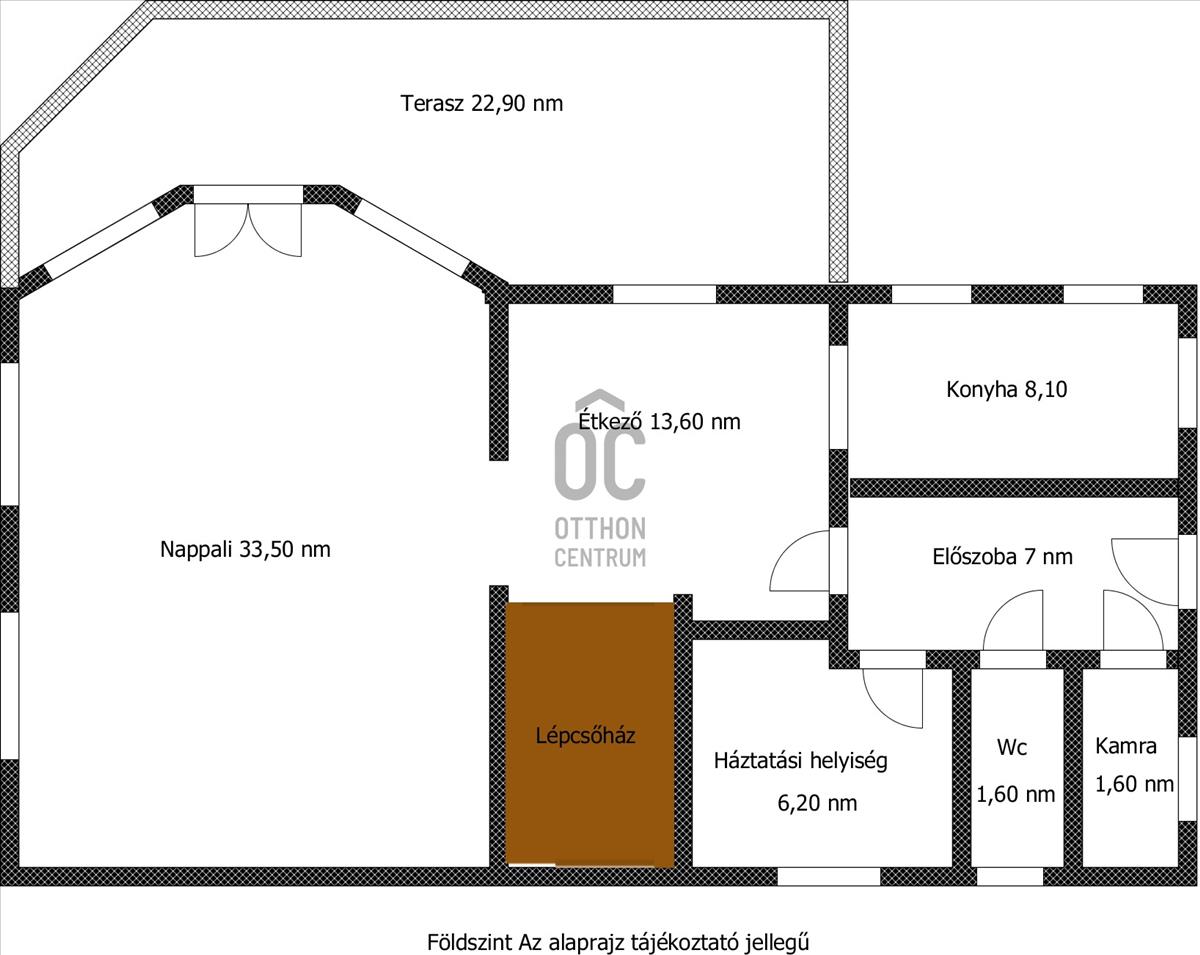 Körbeüvegezett nappali kandallóval, étkező, külön konyha, kamra, háztartási helyiség