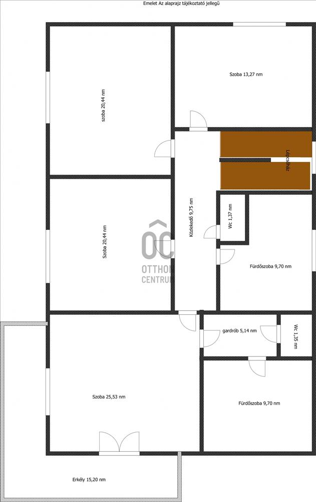 Emeleten 3 szoba, fürdőszoba, külön wc, erkély
