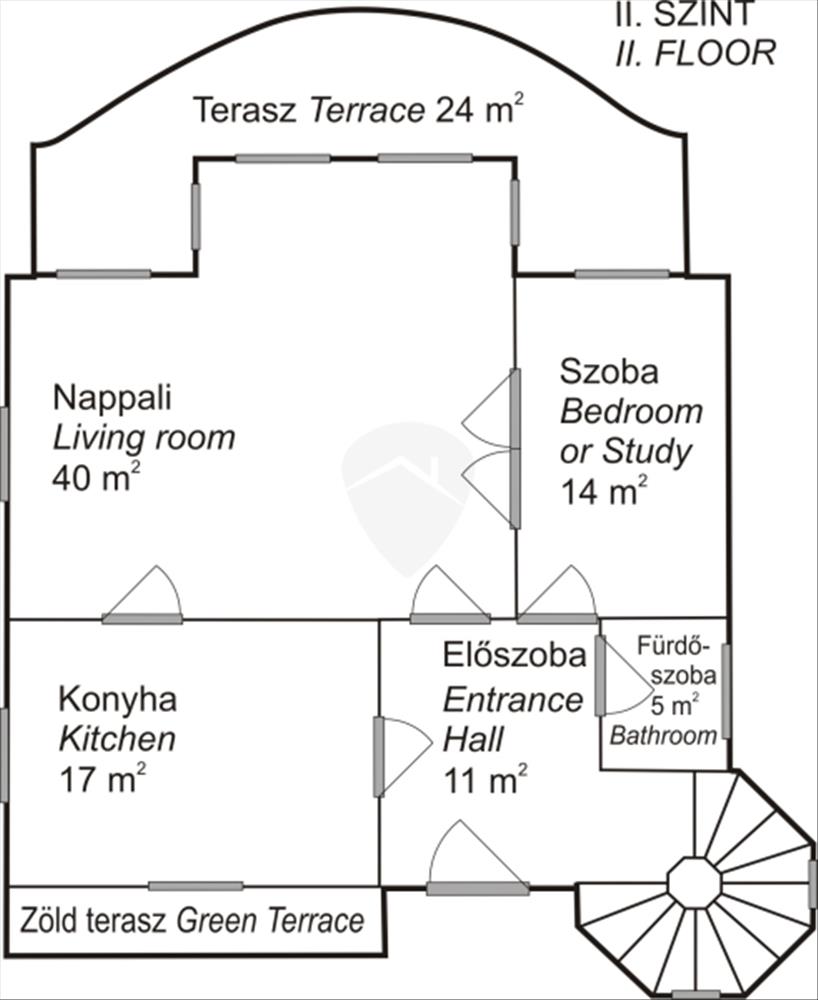 - Napfényes nappali, étkező, gépesített konyha, dolgozószoba
