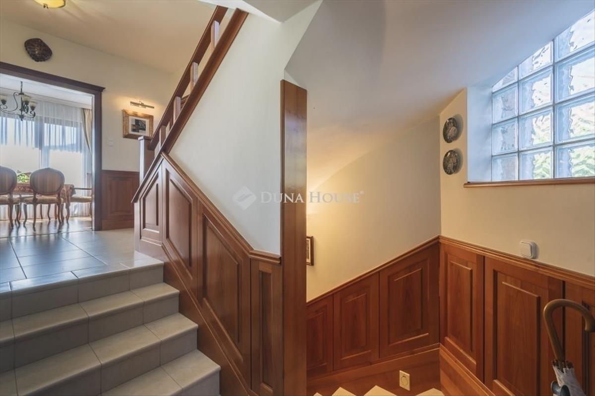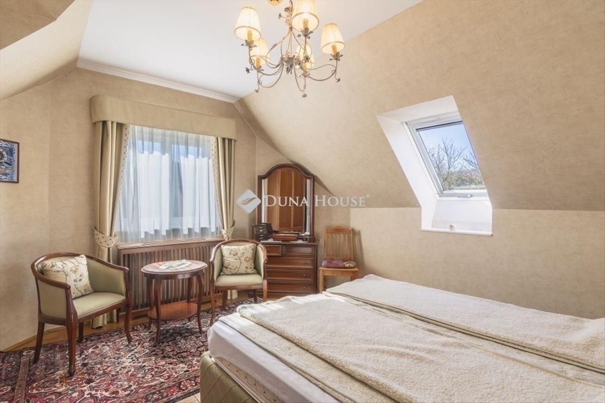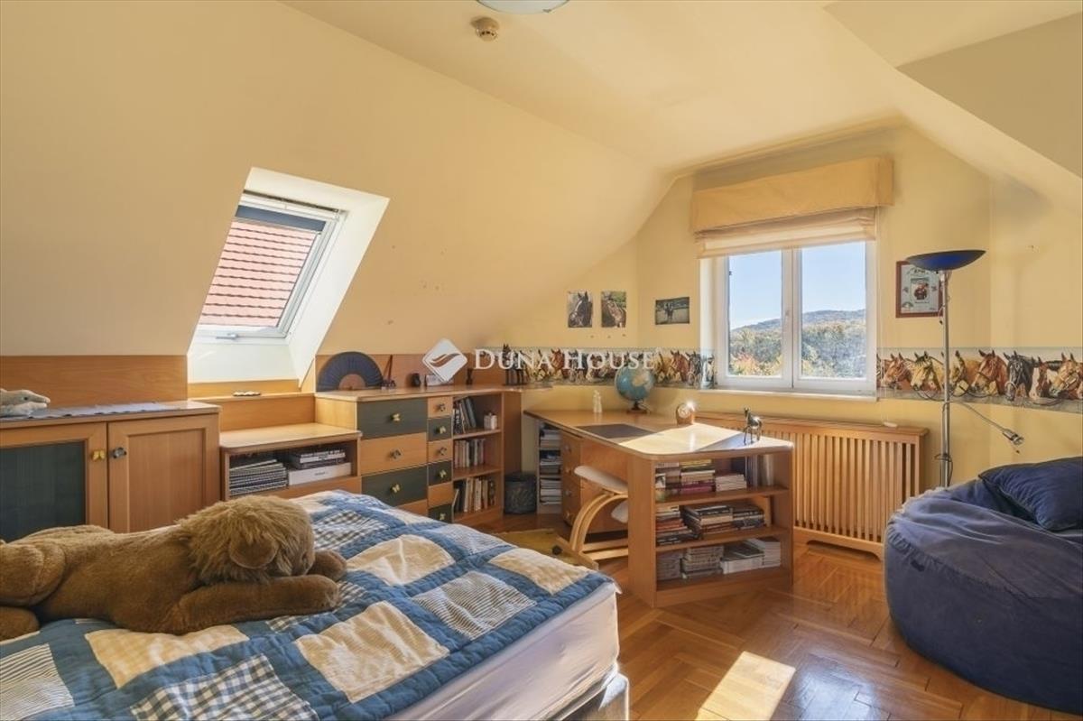 A családi ház átgondolt tervezés eredményeként az alsó szinten található 2 állásos gépkocsi tárolóval, jacuzzi, szauna, kondi- és hobby szoba, bortároló, kamra, tároló, mosó- és szárító helyiség, további tárolóval. Kertkapcsolatos ez a szint, így a privát napozó teraszra léphetünk ki innen. a földszinten az előszobából, külön is nyílik minden helyiség, a bal és a jobb oldali helyiségek és a külső formák tükörképei egymásnak. a ház központi részén a családi ebédlő, amelyből egyik irányba a konyha-kamra, a másik oldalon a családi nappali és tv szoba, amelyet hangulatos kandalló választ el egymástól. Mindhárom térből kiléphetünk a napos és panorámás teraszra, ahonnan csodálhatjuk az elénk táruló természetvédelmi területet, a kilátókat és akár a naplementét. Ezen a szinten található még egy dolgozó/vendégszoba és ehhez közvetlenül kapcsolódóan egy fürdőszoba W. C. -Vel. a felső szinten, a földszinti kialakításhoz hasonlóan a központi térben egy közösségi tér, zeneszoba, tőle balra a gyerekszoba és jobbra a szülői hálószoba. Mindhárom szobából kijárat a kb. 12 Nm-es DNY-i tájolású, 180 fokos panorámával rendelkező erkélyre. a szülői hálóhoz kapcsolódik egy gardróbszoba és egy kádas fürdőszoba. a szinten található még egy további vendégszoba, saját tusolós fürdőszoba W. C. -Vel. a kert egyik szegletében található nagy létszámú társaság befogadására is alkalmas, gyönyörűen kialakított, természetes anyagokból épült szaletli, fa bútorzattal, sütővel. Mellette egy kisebb, szintén faborítású tároló, a további kerti eszközök igényes tárolására. a hangulatos és egyedi családi otthon jelen állapotában és formájában is kiválóan alkalmas a beköltözésre, azonban egyedi igények kialakítása esetén még további, szintenkénti alakítások is megoldhatóak, a telek beépíthetősége 15%.