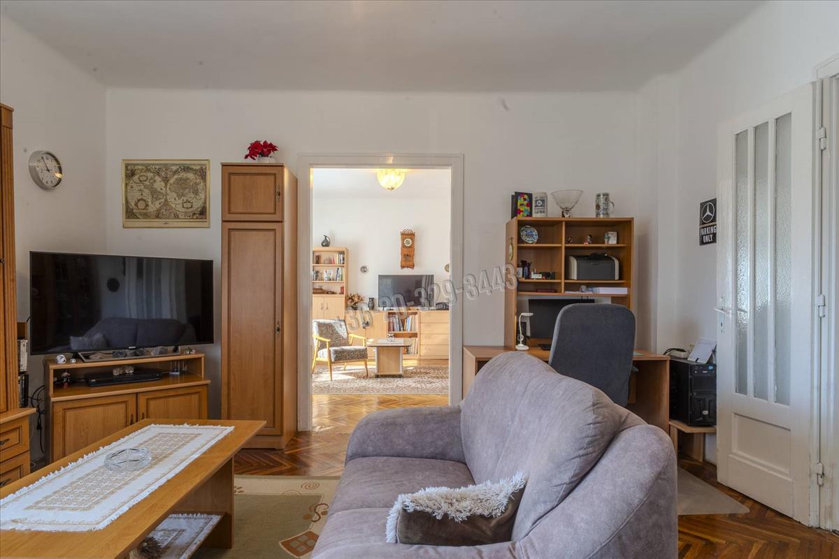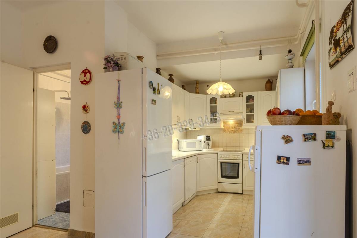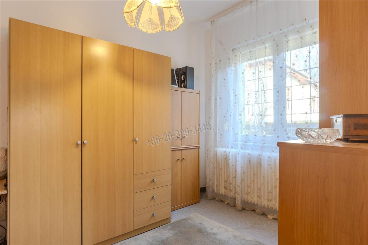 The upper floor, accessible via its own staircase from outside and created in 1986 by converting the attic, has a usable area of 71 sqm (84 sqm including spaces under 1. 9 M height). It contains 3 rooms, a dining area, kitchen, pantry, bathroom, wc, and entrance hall. Here too, the full kitchen furniture is part of the sale, featuring an Electrolux ceramic hob and oven, Zanussi extractor hood, and Candy dishwasher for 12 place settings. Hot water is supplied by a gas boiler with a continuous flow system. The rooms have strip parquet and tiles. The highest ceiling height is 2. 92 M. From the windows of the rooms, you can enjoy beautiful panoramic views of the neighborhood, the garden, and even the János Hill lookout.