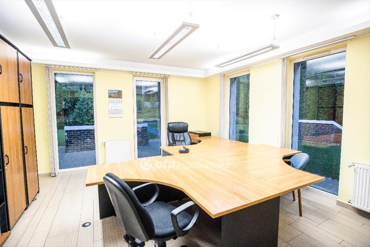Az épületben egy hatalmas előtér, egy nagy-tárgyalóként használható helyiség, 4 kis-tárgyalónak is beillő helyiség és további 6 szoba is található összekötő terekkel, a szinteket összekötő lifttel, egy nagy garázzsal, a garázsszinten szintén szobákkal és egy konyhával-ebédlővel.