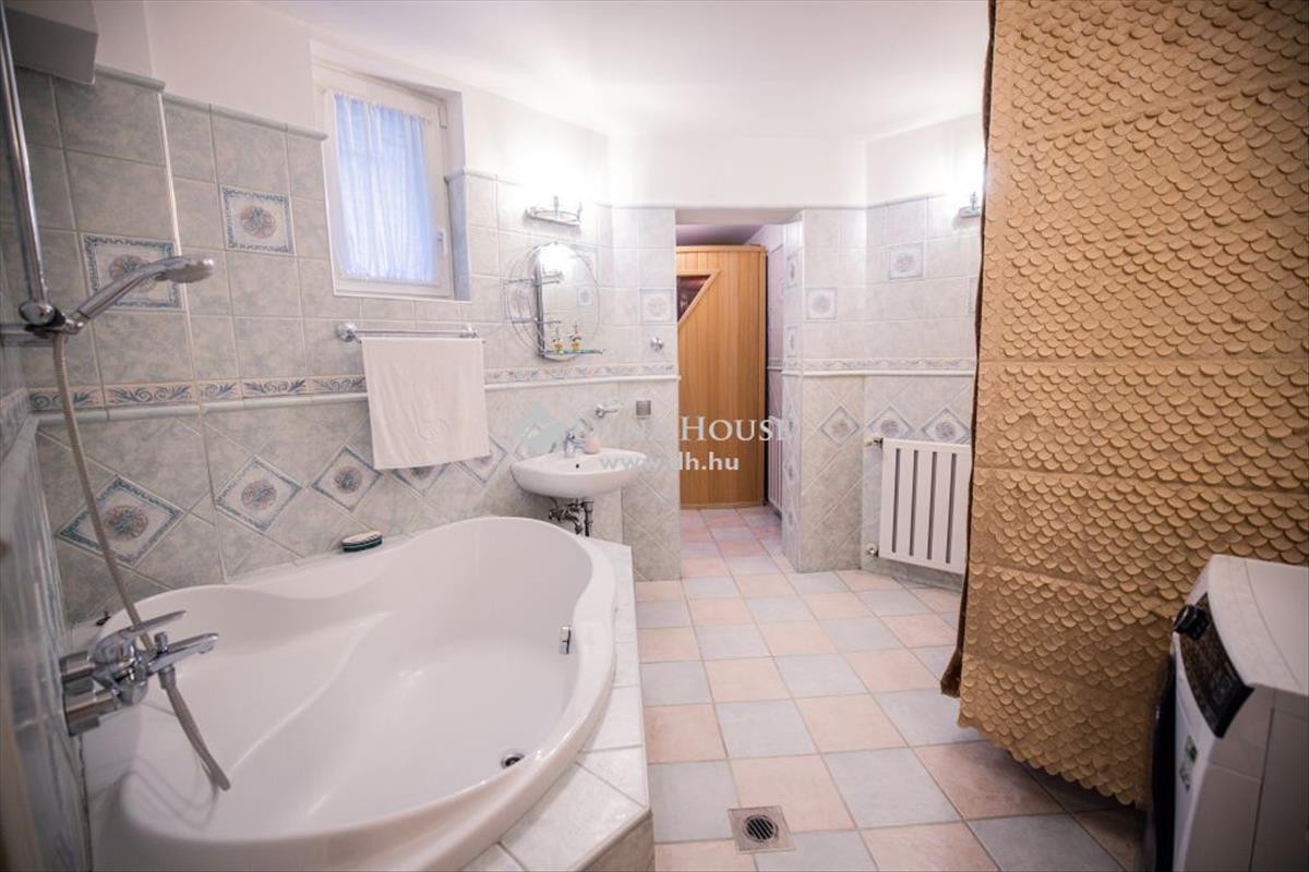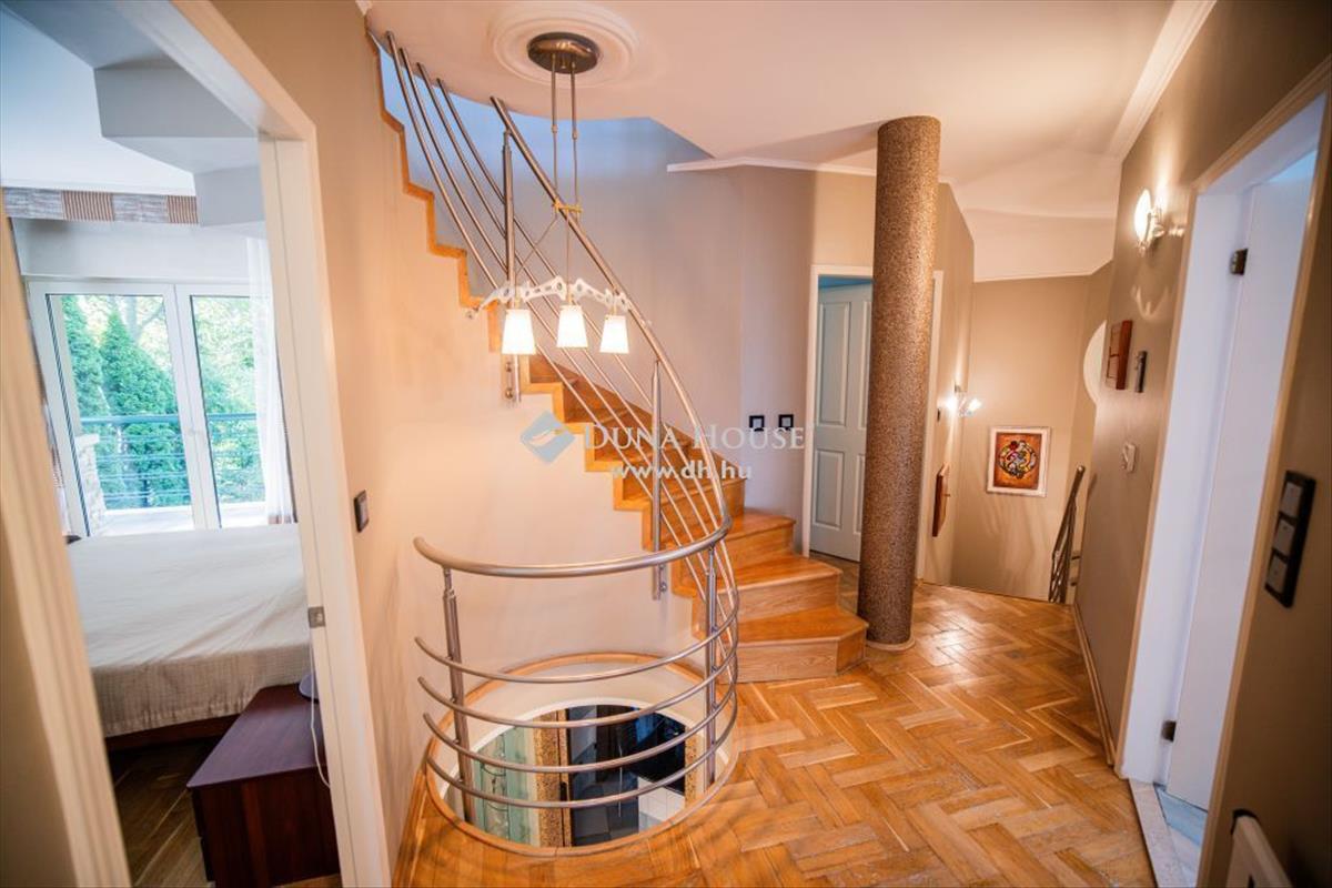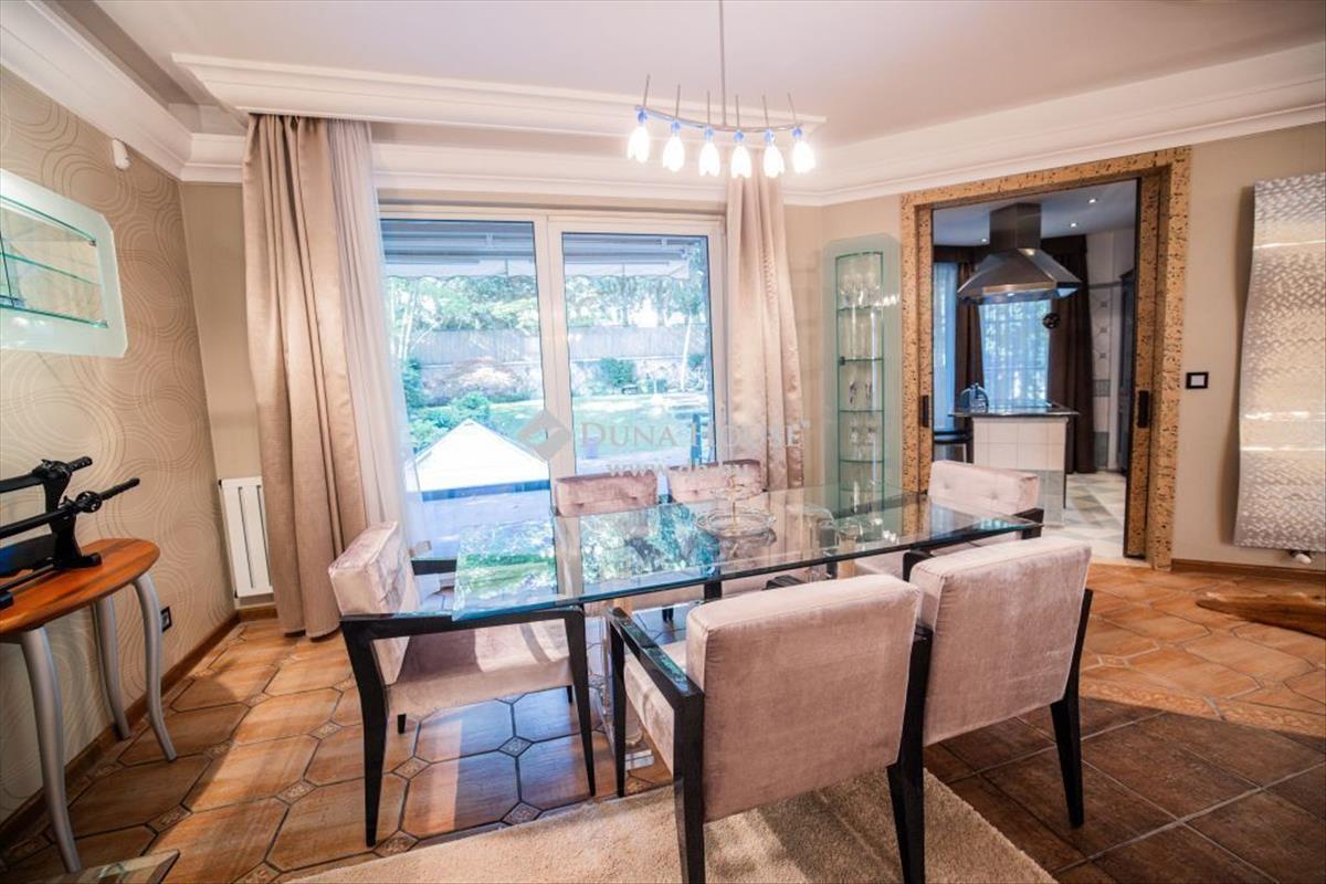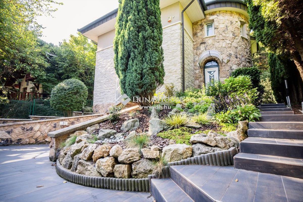 Budapest II. kerületében, Adyligeten csodálatos természetközeli környezetben eladó újszerű, kifogástalan kivitelezésű és állapotú, exkluzívan berendezett családi ház, gyönyörű kerttel! Igényes és tudatos tervezés, minőségi kivitelezés és belsőépítészet. Minden elemében és részletében megmutatkozik a kialakított terek, anyagok és burkolatok, színek, mobíliák láttán a koncepciózus tervezés és megvalósítás. a ház 609m2 csodálatos folyamatosan karbantartott kerttel és benne japán kerttel kialakított telken fekszik, a ház maga 300m2 hasznos minőségi beltérrel és élettérrel rendelkezik, mely minden igényt kielégít a leendő igényes, exkluzív otthont választó tulajdonosa számára. Garázsszinten két állásos garázs, több tárolóhelyiség, fürdő wc-vel, háztartási helyiség, sportszoba, szauna. Földszinten hatalmas fényárban úszó nappali dolby surround kiállásokkal a falakban, carrarai márványból készült kandalló (minősített kéménnyel), benne szintén carrarai márványból készült térplasztika és egyben csobogó. Hatalmas konyhaszigettel kialakított, szintén napfényes konyha új aeg gépekkel -üveges egyedi készítésű fa intarziás tolóajtóval elválaszthatóan-, előszoba, vendég wc, közlekedő, és étkezőből nyíló hatalmas terasz a kert felé. emeleten 3 szoba, privát terasz a kert felé, gardrob szoba, hatalmas felülvilágítós fürdő mosdóval 2 személyes jakuzzis káddal és zuhanyzóval, háztartási helyiség 2 emeletről is elérhető szennyesledobóval. Második emeleten panorámás dolgozó, olvasó helyiség/relax szoba. Biztonsági bejárati ajtó, a lépcsőházban acélvázas tömörfa lépcsők, unikális bevilágítók és térmegoldások. Tölgyfa melegburkolatok, prémium hidegburkolatok. Pinceszinten és földszinten padlófűtés. Máshol radiátoros fűtőtestek. a kertben a gépkocsibeálló és az összes külső lépcső fűthető- külön kapcsolószekrénnyel vezérelhetően-, elektromos garázsajtó és kapu. a telek szélén végig intelligens mozgásérzékelő, kamerarendszer. Öntözőrendszer, csepegtető rendszer a kertben. a homlokzati kőburkolat az USA-ból származó textúrált kőzet. a ház csendes, átmenő forgalomtól mentes utcában található, német óvodához és amerikai iskolához közel. Ha természethez közel, csendes, tiszta levegőjű helyre, minőségi környezetre vágyik Budapest egyik legigényesebb és legszebb lokációjában, mindenképp látnia kell.