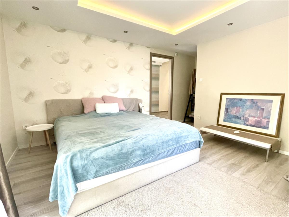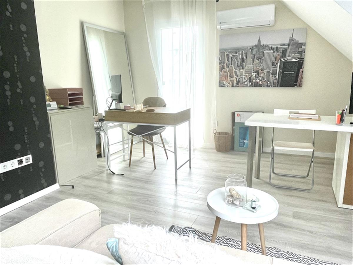 szülői hálószoba, saját gardróbbal terasz kapcsolattal, egy dolgozó/vendég szoba és egy tágas zuhanyzós kádas fürdő szoba.