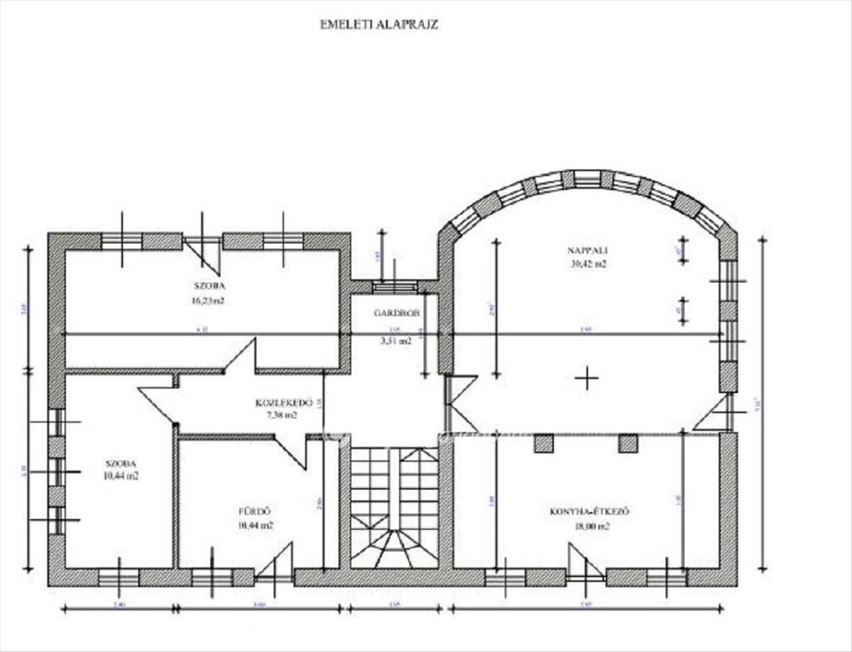 -Emelet: amerikai konyhás nappali, étkező, 2 háló, fürdő