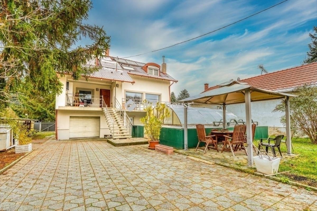 A különleges méretű telek kiválóan kihasználható, gondozott, viacolorral burkolt és több funkcionális egységgel rendelkezik:-fedett, fűthető medence-különálló műhely-téli kert-fedett grillező-kerti kút-locsoláshoz tökéletes-üvegház-pihenőterasz-rendezett hátsó udvar, több gépjármű parkolására-elülső udvarról megközezelítve: fűtött garázs- vissza alakítható dupla állásos garázzsáA ház felszereltsége:-napelem-2022-ben lett felszerelve, még a saldos elszámolás szerint üzemel-napkollektor-padlófűtés a hideg burkolat alatt (1. Szinten)-hőcserélős szellőztető rendszer-kandalló a nappaliban-4 db klíma -benti fűtött garázs-minőségi burkolatok: márvány, gránit, parafa-egyedi belső tölgy és fenyőfafa nyílászárók-konditerem-szauna-vízszigetelés-konyha- gránit munkalap-ablak alatti könyöklő: márványKörnyék: