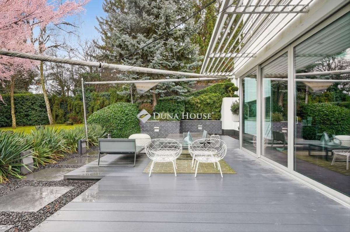 A sík, gondosan parkosított, 917 m²-es telken elhelyezkedő ingatlan nettó 402 m² alapterülettel rendelkezik, több teraszkapcsolattal és jól elkülönített privát élettérrel.