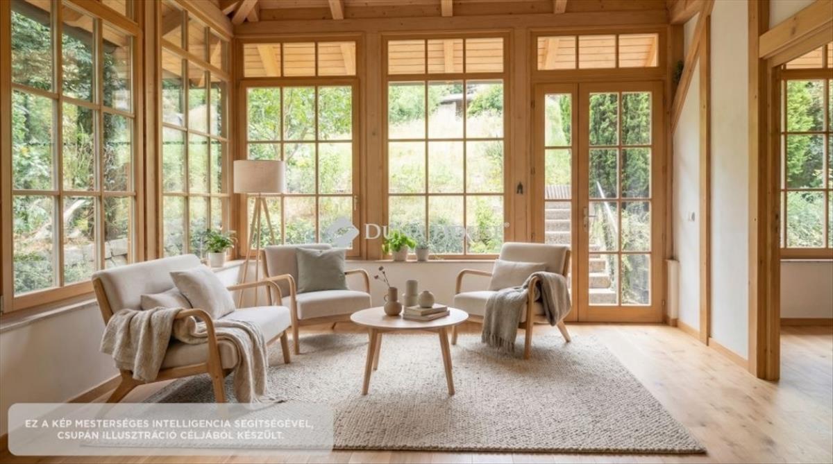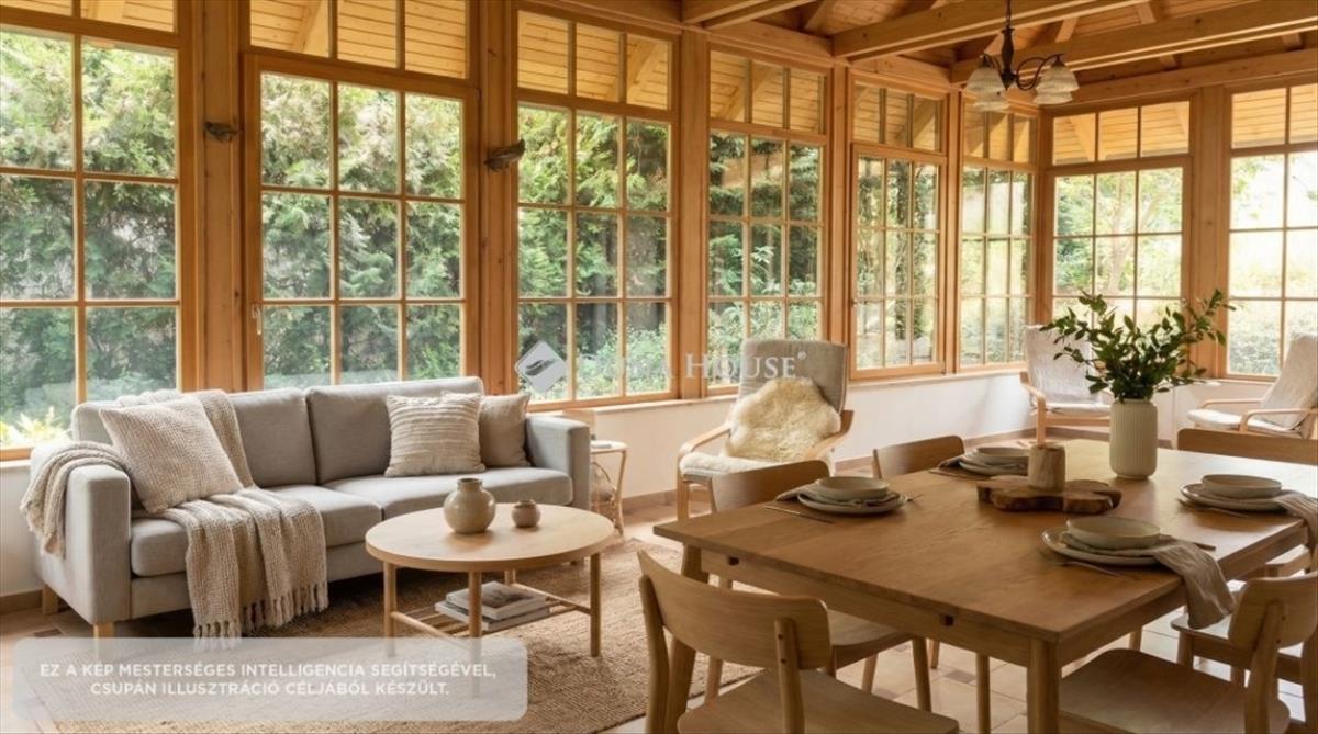 Kivételes lehetőség: örökpanorámás családi otthon külön lakrésszel, akár több generáció számára! Együtt, mégis külön. Ez az egyedi tervezésű, máriaremetei családi ház ideális választás lehet nagycsaládosoknak vagy több generáció együttélésére. Kényelmes megoldást nyújthat akár egy otthonról dolgozó családtagnak, akár nagyszülők számára is, hiszen a külön lakrész biztosítja a nyugalmat és az önállóságot. a ház a természet közelségét és a városi élet kényelmét kínálja egyszerre. a zöldövezeti, csendes környezet nyugodt, pihentető otthoni hangulatot teremt, miközben Budapest belvárosa autóval rövid idő alatt elérhető. a nagy méretű kert, a hangulatos borospince, a tágas garázs és a további autóbeállási lehetőség különösen kényelmessé teszi az ingatlant nagyobb családok számára. a ház fűtése és melegvíz-ellátása gázcirkóval megoldott, a földszinten padlófűtéssel kiegészítve. a 2005-ben épült, tetőtér-beépítéses, kétszintes tégla családi ház egyedi kialakítású. a két generáció számára kialakított otthon egyik, külön bejáratú lakrésze 35 m²-es, amely a földszinten található. Itt egy előtérből nyíló szoba, konyha és fürdőszoba kapott helyet WC-vel. a konyhából egy praktikus átadóablak nyílik a nappali étkezője felé, ami családi összejövetelek alkalmával különösen hasznos. a közös, tágas nappali különleges hangulatát a három oldalról elhelyezkedő kazettás fa ablakok adják. Innen olyan érzésünk lehet, mintha szinte a fák között ülnénk: a természet közelsége, a madarak hangja és a mókusok játéka igazán egyedi atmoszférát teremt. a másik lakrész konyhája a nappali túloldaláról nyílik, a hátsó kert és az oldalkert felé néz. Modern, U-alakú elrendezése praktikus és kényelmes. Ezen a szinten található még egy háztartási helyiség és egy külön wc mosdóval. a konyha melletti lépcső vezet az emeletre, ahol egy tágas, egy légterű nappali található, fenyőfa burkolattal és kialakított dolgozósarokkal. a légkondicionált, napfényes tér sokféleképpen alakítható. a földszinti nappalira néző üvegpadló nemcsak különleges látványelem, hanem még több természetes fényt enged a térbe. Az emeleten egy közlekedő vezet a kisebb szobához, mellette egy zuhanyzós fürdőszoba WC-vel, valamint a hálószobához. a hálószobából nyílik a teljes szélességében elterülő, diófa burkolatú fedett terasz, ahonnan lenyűgöző, örökpanorámás kilátás nyílik a budai hegyekre. a széles, eltolható nyílászárók lehetővé teszik, hogy ezt a kilátást a lehető legjobban élvezhessük. a kert nagy méretű, enyhén emelkedő kialakítású, a domboldalban pedig egy hangulatos, boltíves borospince található. a ház szigetelt, jó műszaki állapotban van. Elsősorban esztétikai felújítást igényel, így viszonylag kis ráfordítással egy igazán hangulatos, kényelmes családi otthon alakítható ki belőle. a tulajdonosok saját részre építették, kezdetben nyaralóként, később állandó lakhelyként használták. Az ingatlan jelenleg üres, így rövid időn belül birtokba vehető. a környék csendes és zöldövezeti. Néhány utcával arrébb buszmegálló található, ahonnan Hűvösvölgy 10 perc alatt elérhető, onnan pedig a városközpont körülbelül fél óra alatt megközelíthető. a közelben óvoda, iskola, kisebb boltok, éttermek és szolgáltatások is megtalálhatók, a környék pedig bővelkedik kirándulóhelyekben. Hitel.hu - Hasonlítsa össze a bankok lakáshitel ajánlatait
