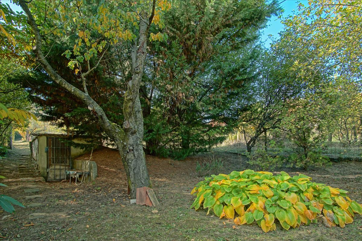 • Az udvar enyhén lejtős, teraszos kialakítású, több gyümölcsfával: 2 dió, 2 szilva, alma, sárgabarack, szőlő, ribizli, málna