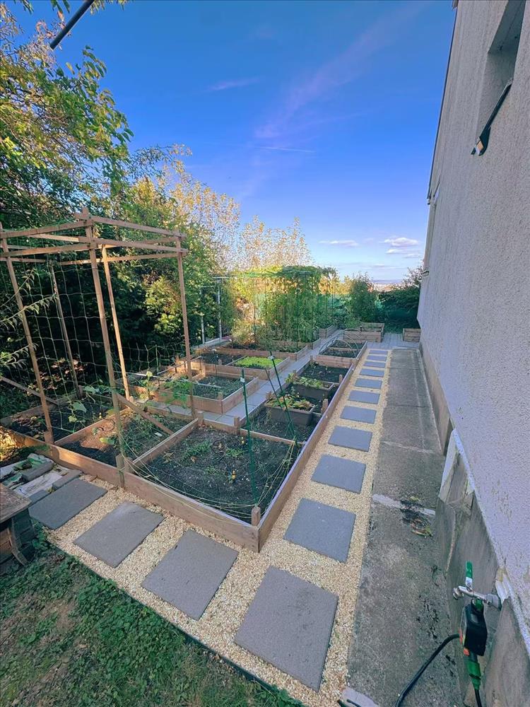 A házhoz tartozó 642 négyzetméteres telek pontosan elegendő nagyságú: ideális méretet biztosít a kertészkedéshez és a gyerekek zavartalan mozgásához anélkül, hogy túlságosan sok energiát igényelne a fenntartása.