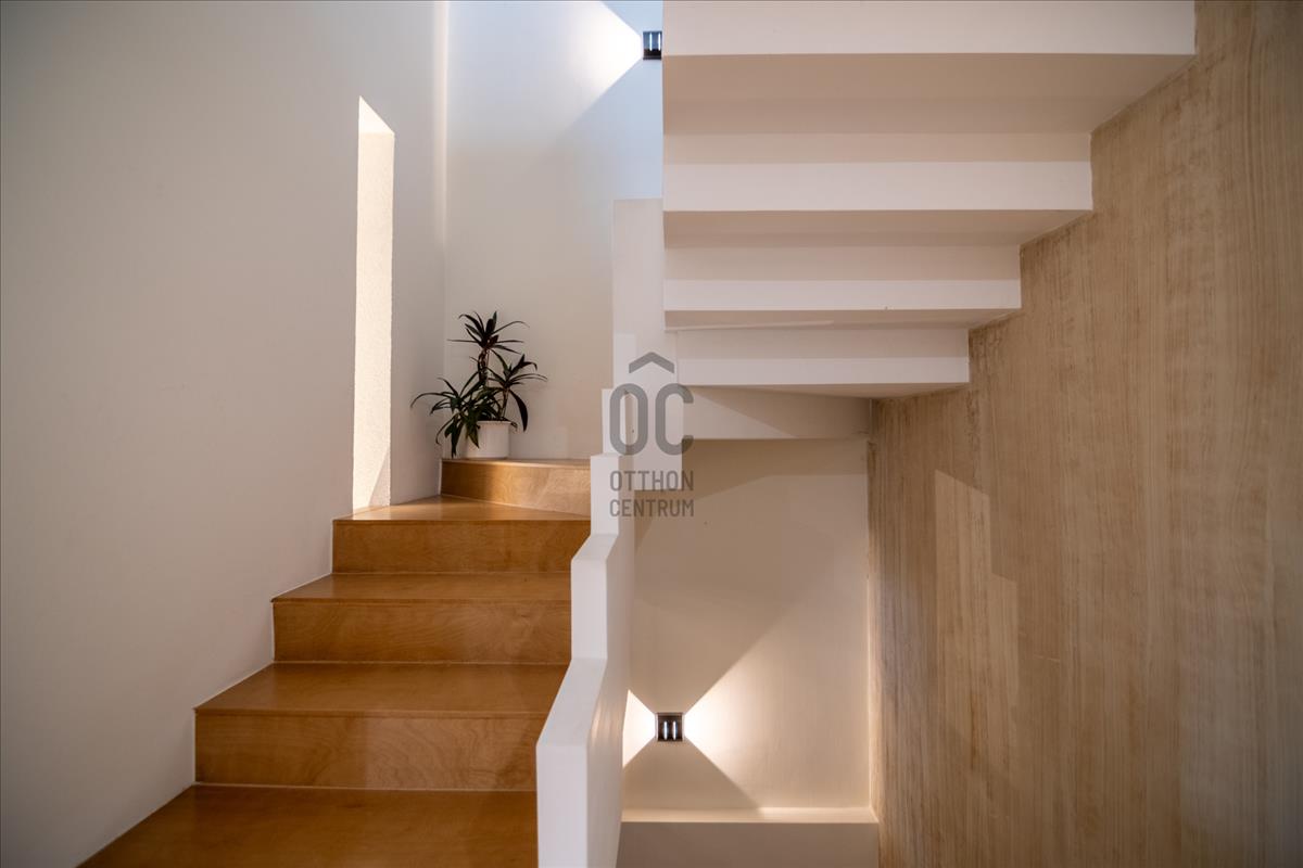 A III. kerület csendes, zöldövezeti részén, Ürömhegyen kínálunk eladásra egy minden részletében átgondolt, egyedi tervezésű otthont. a modern építészet és a természetközeli életstílus tökéletes harmóniában találkozik ebben a házban, amelyet kiemelkedő szakmai referenciákkal rendelkező belsőépítész alkotott meg.