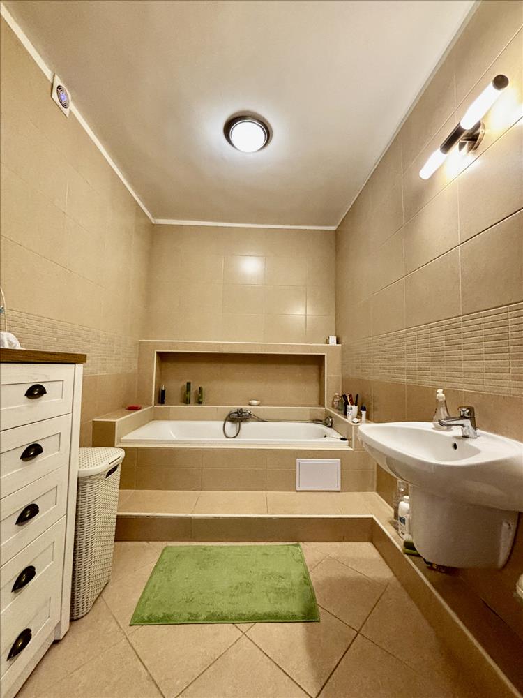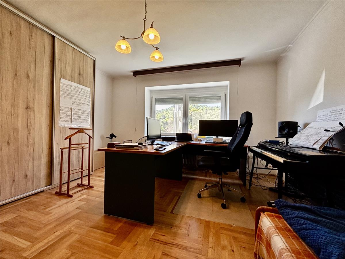 melyhez kamra tarozik, nagy méretű szoba, kádas fürdőszoba, wc-vel, külön vendégmosdó,