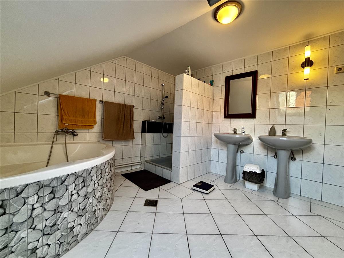 Az emelet elrendezése: 5 szoba, kádas, zuhanyzós fürdőszoba wc-vel, bidével.