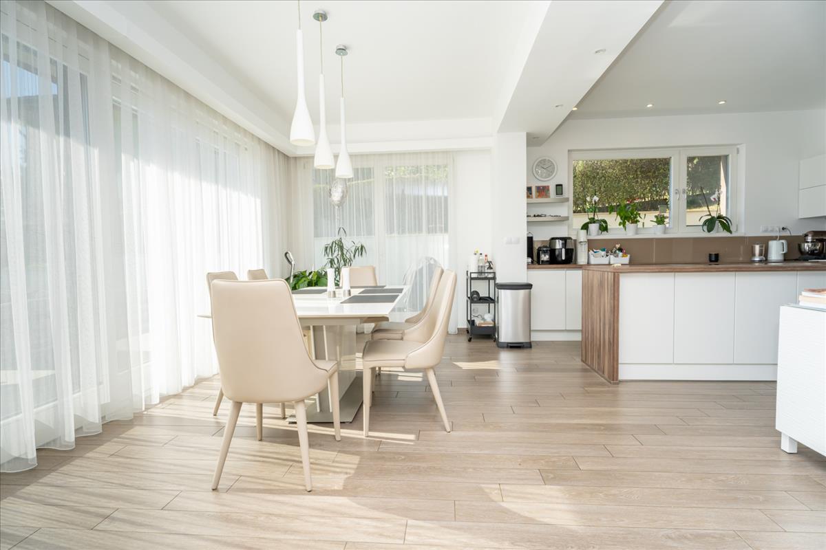 A családi házat hatalmas, világos terek, élhető, praktikus elrendezés jellemzi.