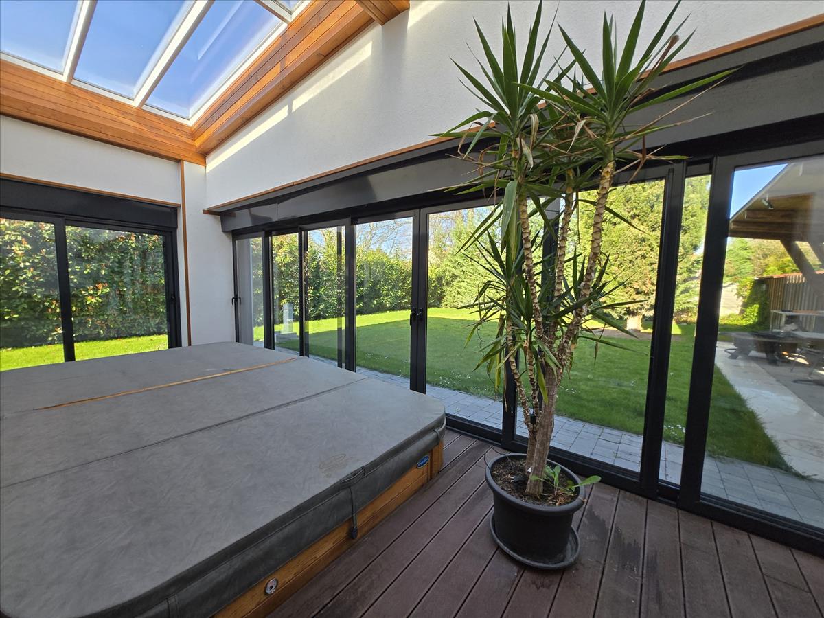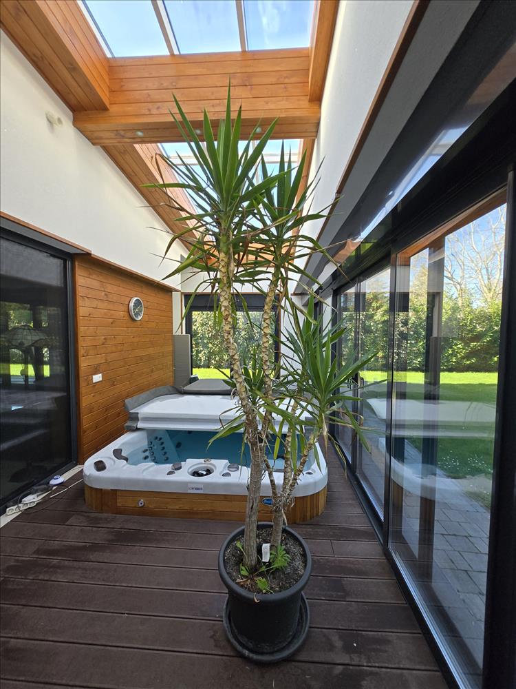 A beépített teraszon ellenáramoltatós jakuzzi és szauna is található.