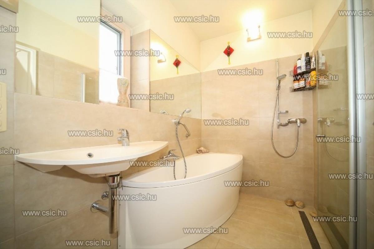 Alsó szint: 3 szoba, étkezős konyha, előszoba, fürdőszoba Wc-vel. Nettó 78 m2, jó állapotú, beköltözhető. Inverteres klíma és hőcserélős szellőzőrendszer működik. Riasztóval felszerelt. Bejáratát acél biztonsági ajtó védi.