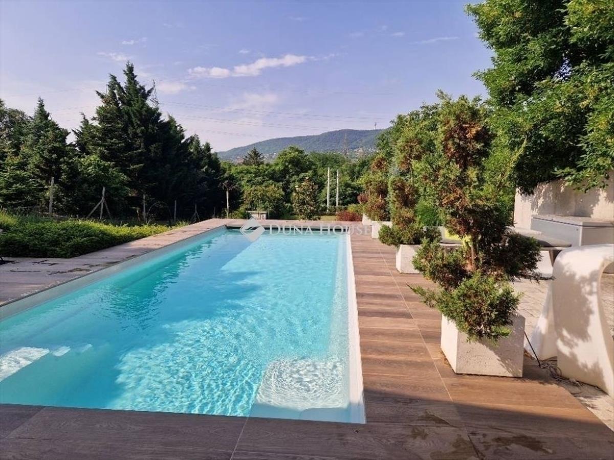 1558 Nm telek, 294 lakó nm, 15 + 22 nm teraszok, 3 fürdőszoba, garázs, medence.