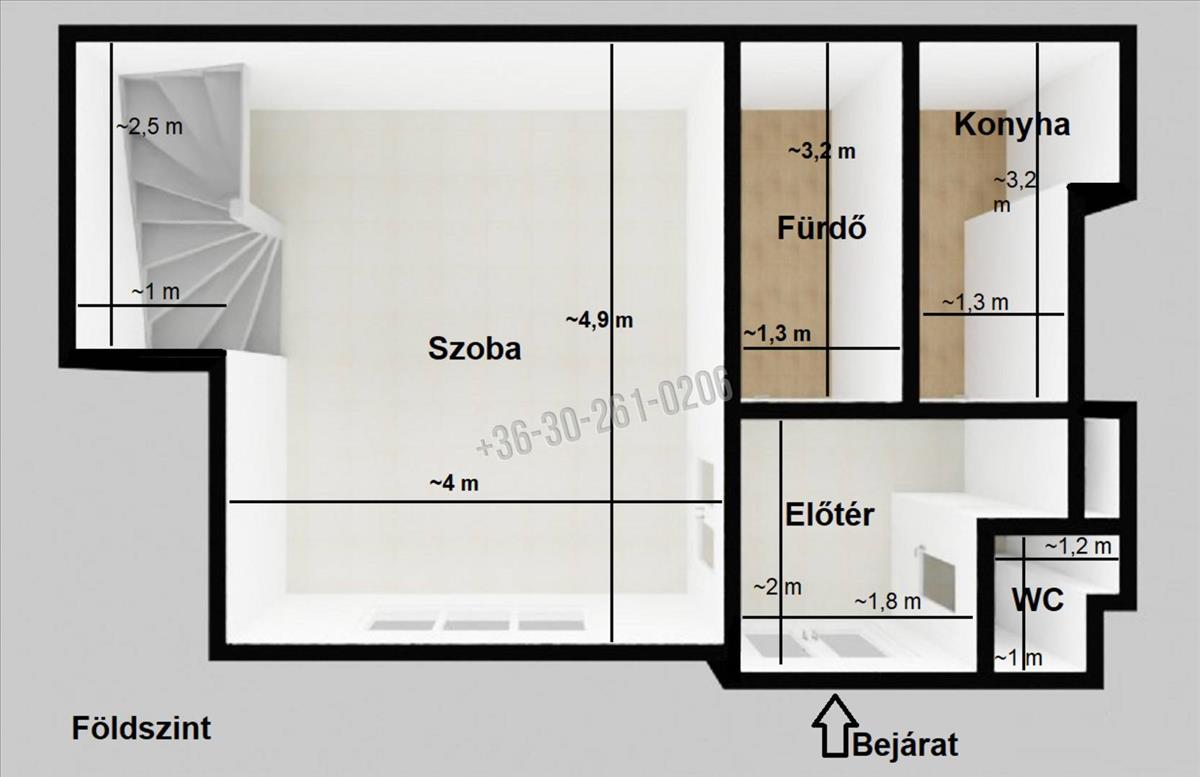Szoba: 4 * 4, 9 = 19, 6 m2