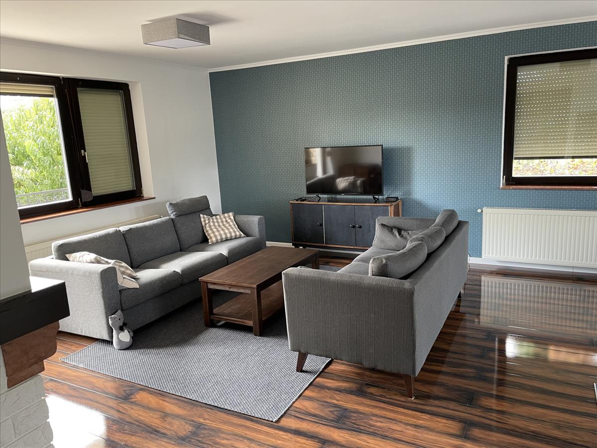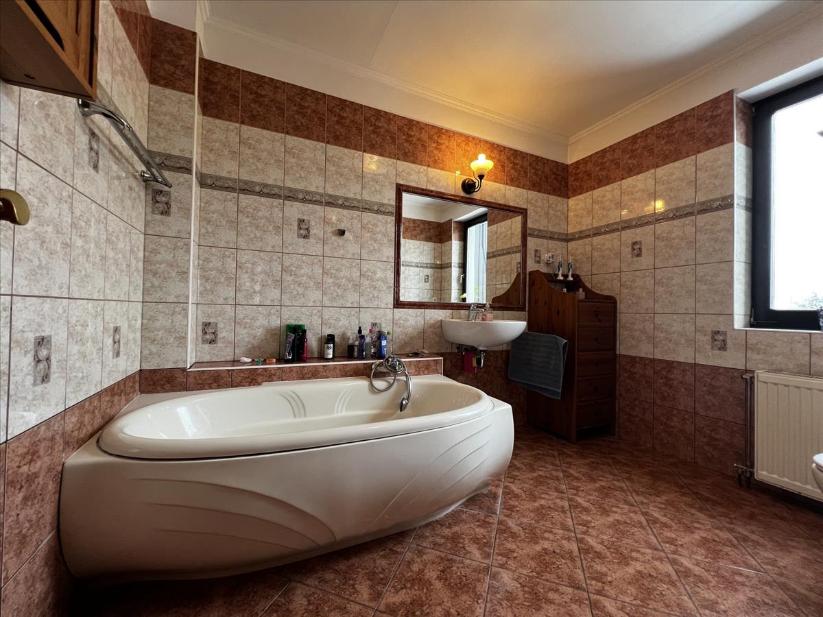 A felső szinten található ugyancsak egy nagy amerikai konyhás nappali étkezővel, 3 szoba, egy kádas fürdőszoba és egy zuhanyzós fürdőszoba mellékhelyiséggel.