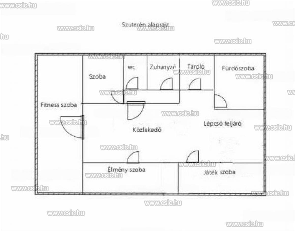 A szuterén (150 nm ): konditerem, fitness szoba, játékszoba, élményszoba, tároló, fürdőszoba, wc, zuhanyzó, közlekedő kialakítású.