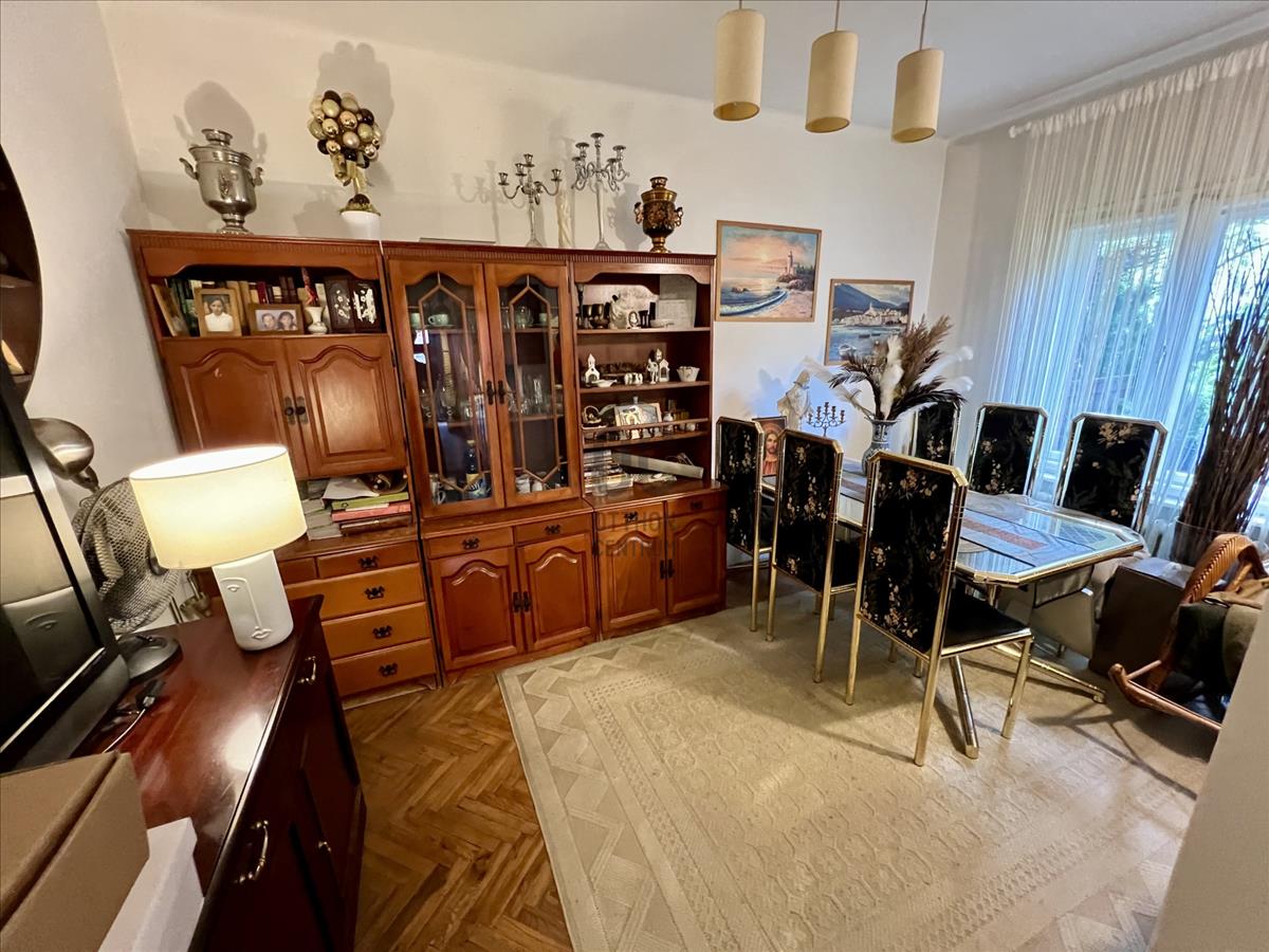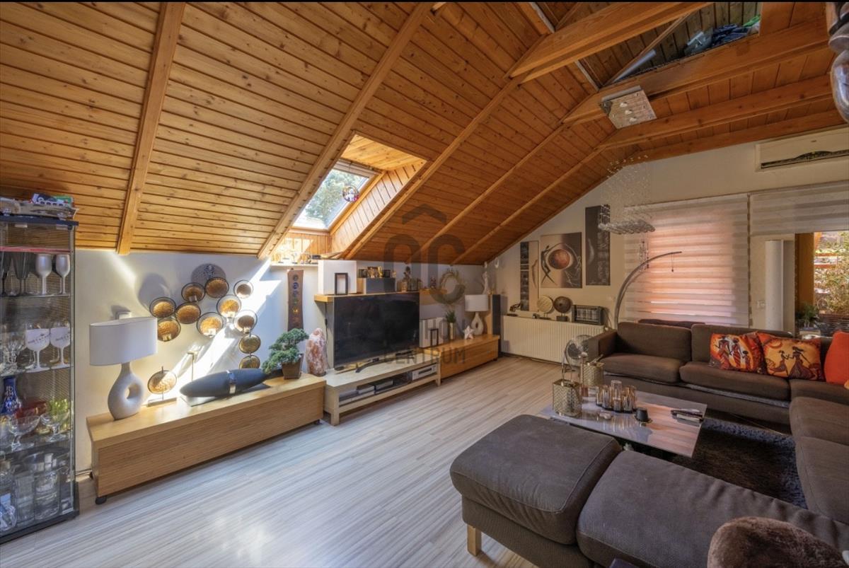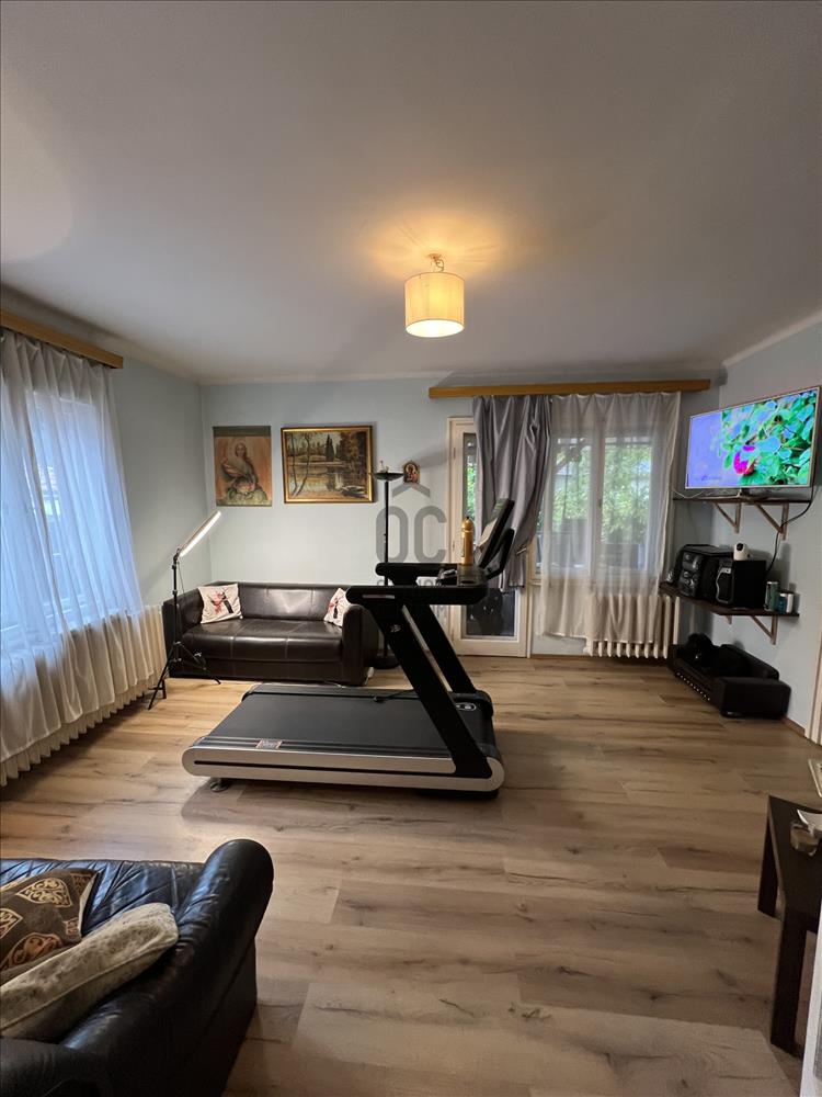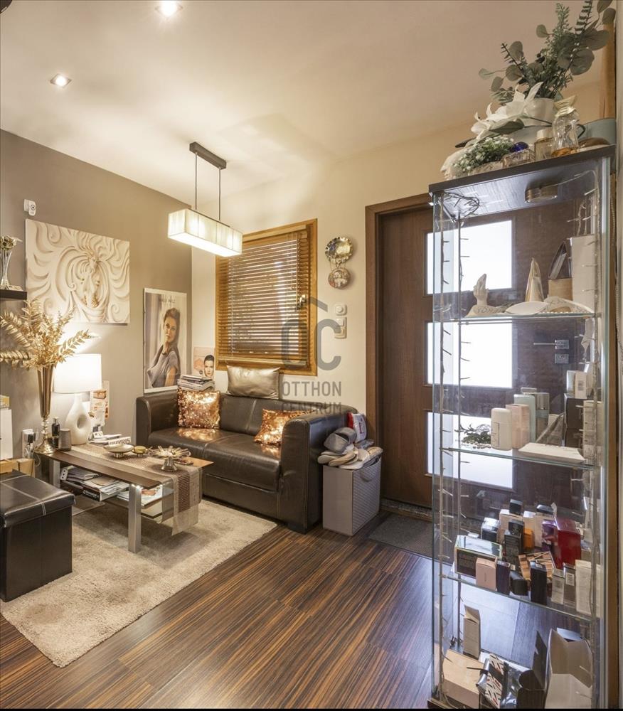 A tetőtér igényesen lett kialakítva 2001-ben. Természetes fa burkolata melegséget és harmóniát áraszt. a privát teraszról reggeli fényben fürdőző kert látványa fogad. a földszinti lakás ugyan felújítandó, de éppen ez adja meg azt a szabadságot, amellyel teljesen a saját ízlésére formálhatja. a zárt lépcsőházban pedig egy szauna is helyet kapott – hogy a hétköznapok után mindig legyen hová elvonulni, feltöltődni.